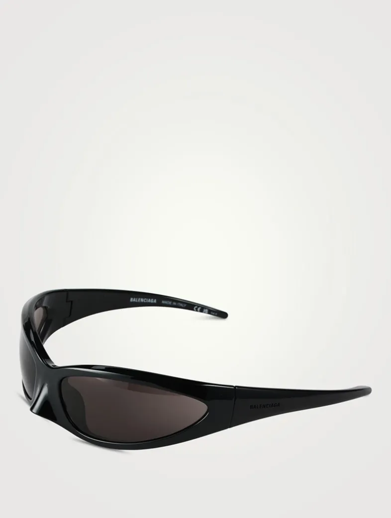 Quintessentially BALENCIAGA, these sporty sunglasses feature a distinct wraparound shape with oval lenses.
