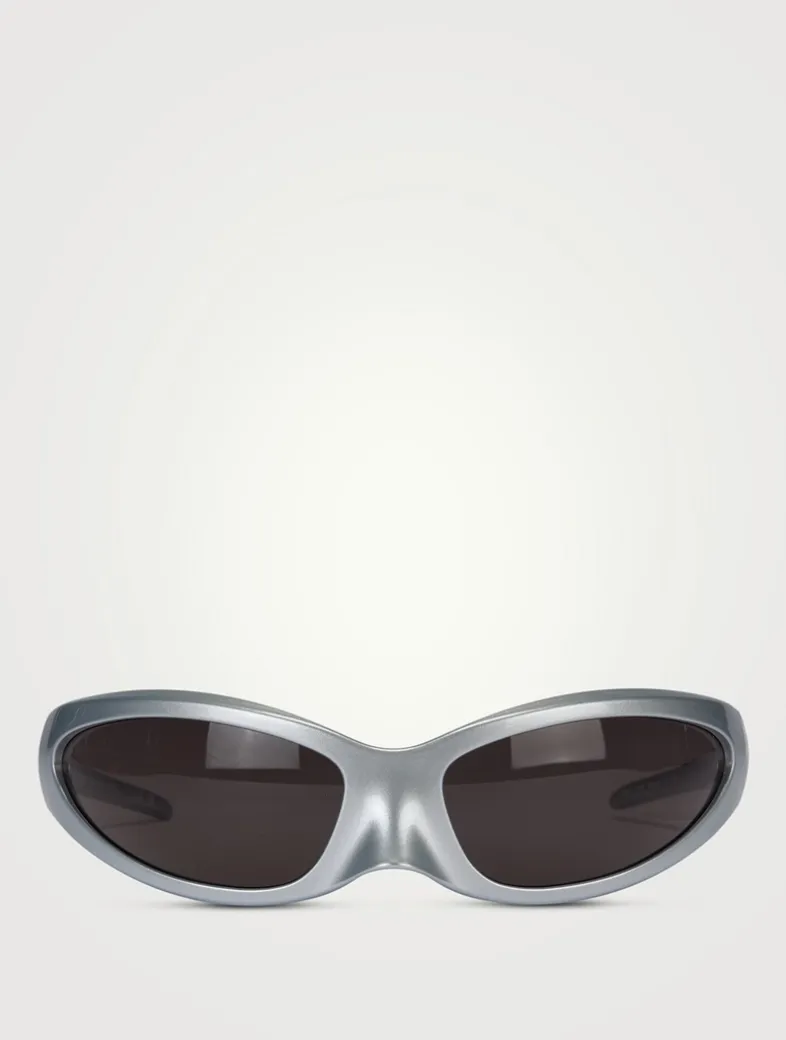 Quintessentially BALENCIAGA, these sporty sunglasses feature a distinct wraparound shape with oval lenses.