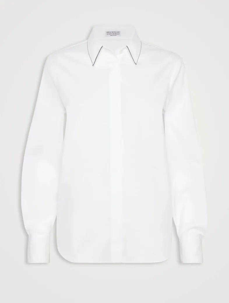 Stretch cotton poplin shirt with shiny collar