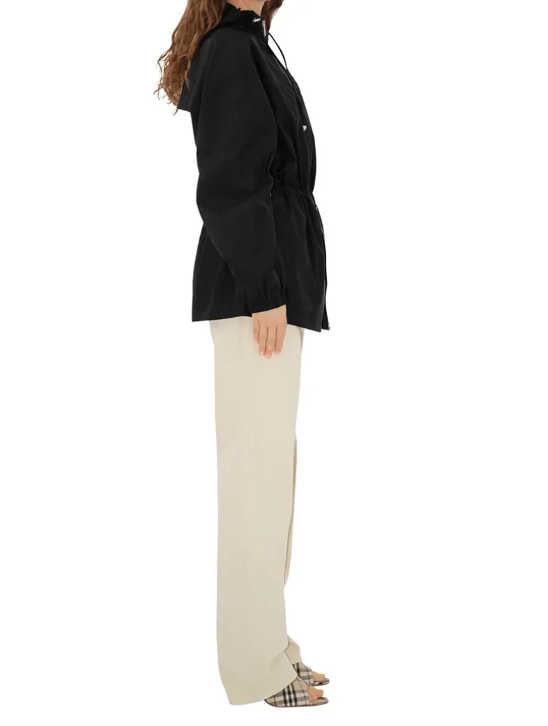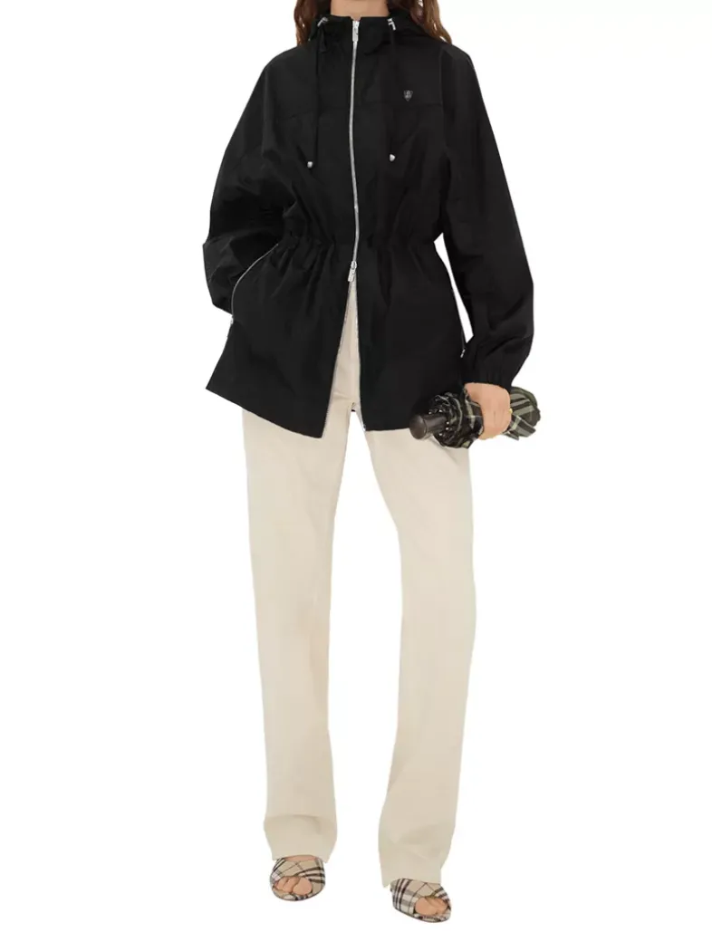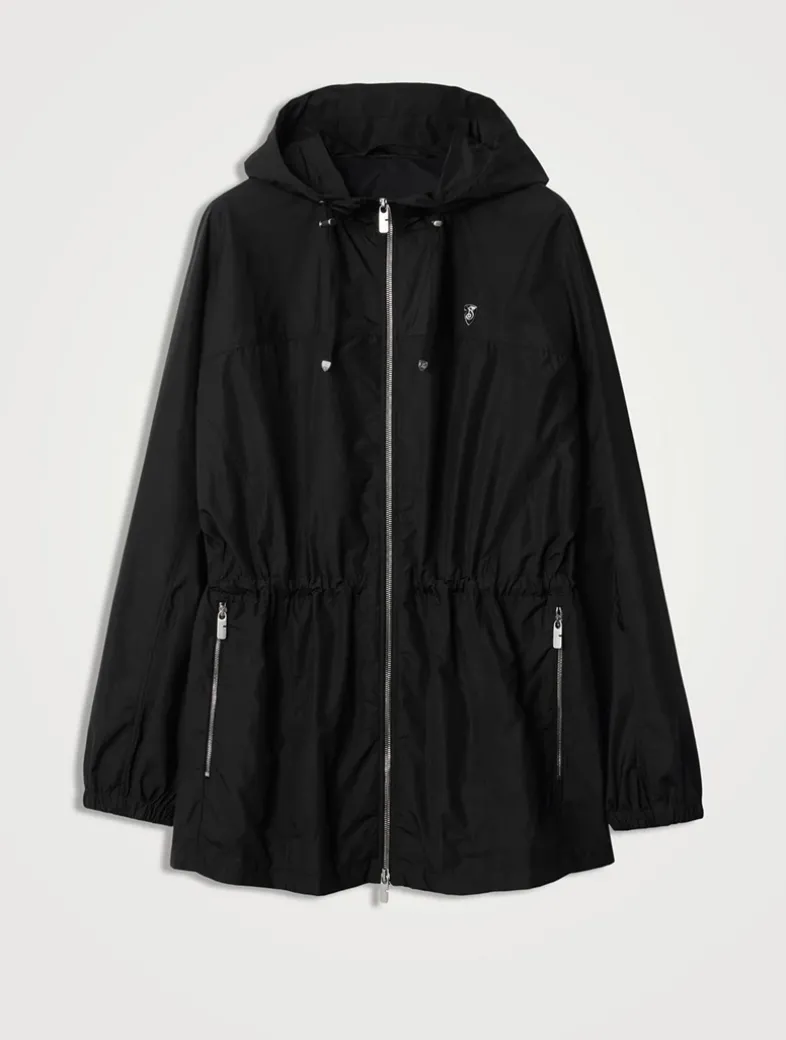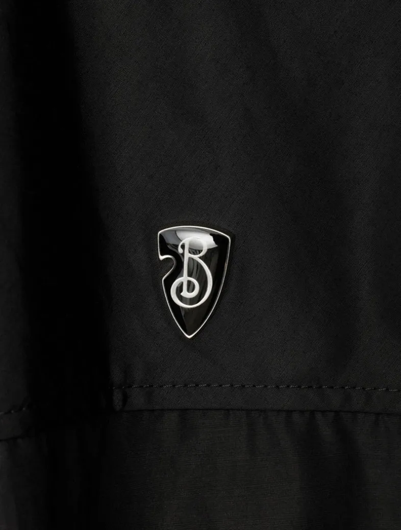 A lightweight hooded jacket in an Italian-woven nylon cotton, detailed with an enamelled B shield plaque. The design is cut to an oversized fit and cinched with a drawcord waist.