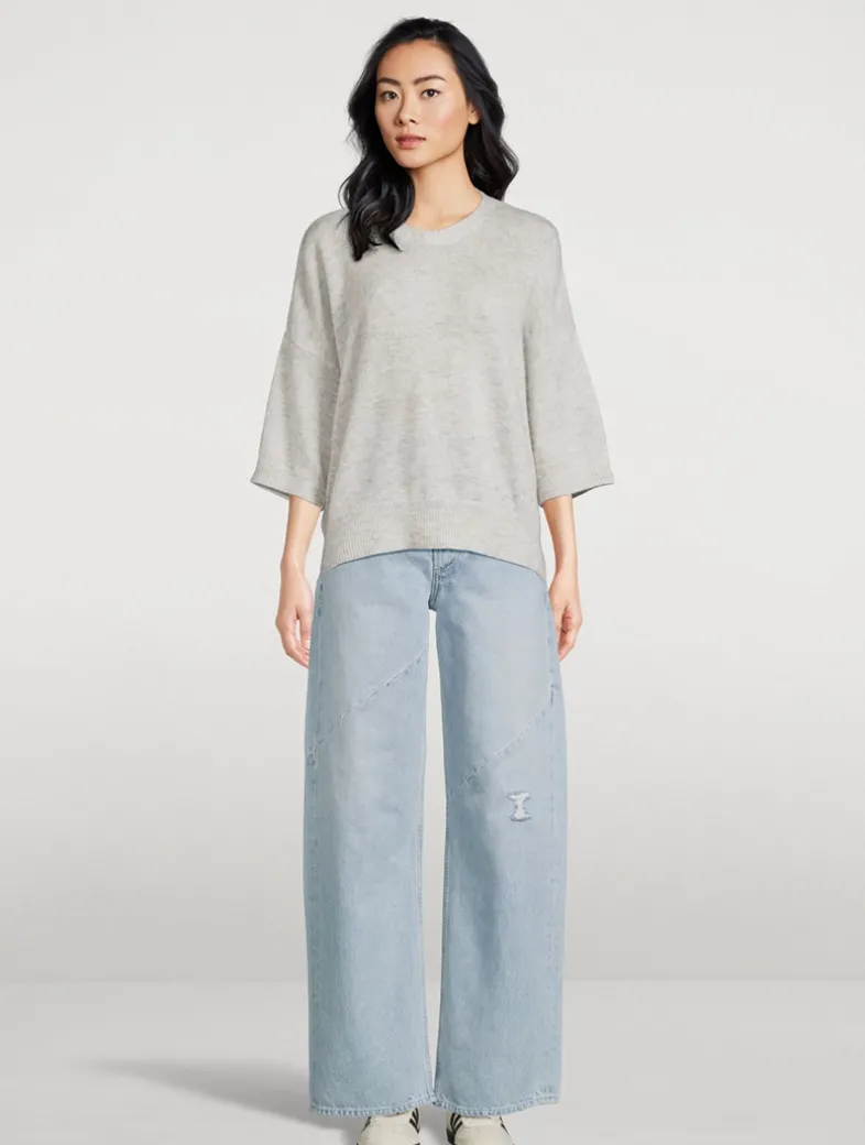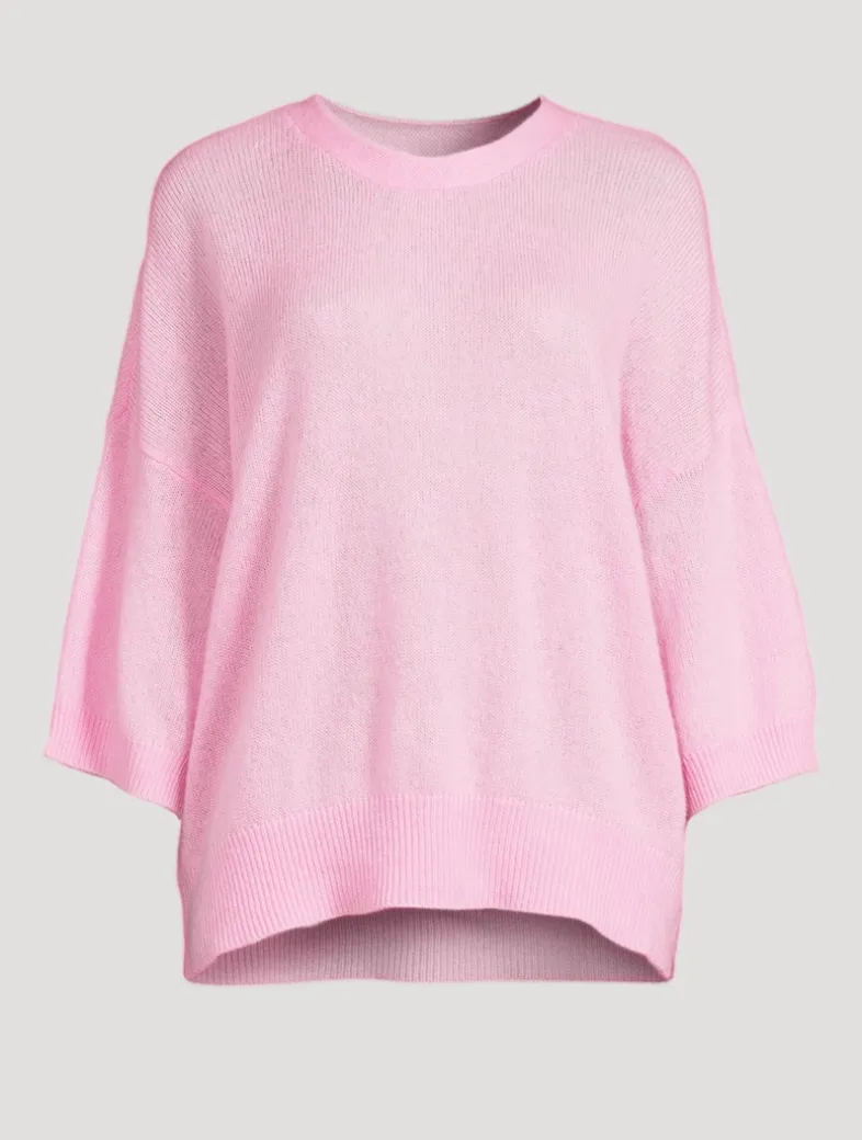 An elevated take on a classic style, this short-sleeve pullover is knit from a luxurious mix of merino wool, cashmere, and silk. Edged with ribbed trim, it is cut to an oversized silhouette with dropped shoulders.