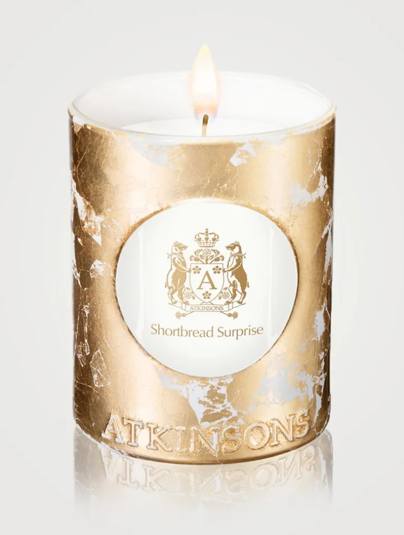 Atkinsons Shortbread Surprise Candle is a mouth-watering scent that conjures up memories of cozy afternoon teas and holiday affairs. The decadent gourmand candle fills your room with the comforting scent of freshly baked shortbread cookies. Light the wick and you’ll soon smell the sweetness of vanilla and toffee tempered by marzipan notes of almond and heliotrope. A hint of apple tree blossom adds a subtle floral bouquet. A milky black tea accord, quintessentially British, is the final ingredient for a recipe that exudes warmth and comforting memories. Place it in your kitchen or dining room for maximum effect.