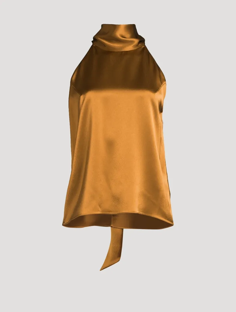 The Sienna Top follows in the footsteps of Galvan London’s signature Sienna Dress. In silky satin that beautifully drapes the body, t features a high halter neckline with a sash tie.