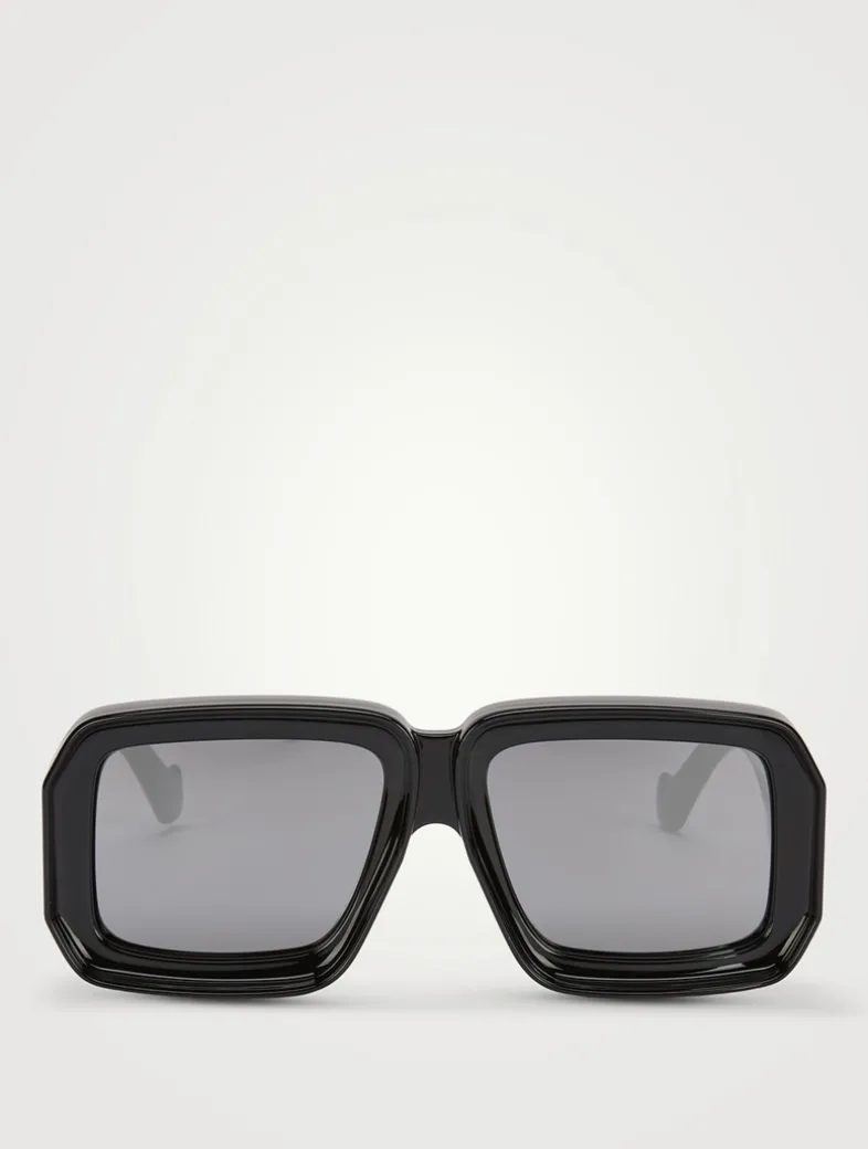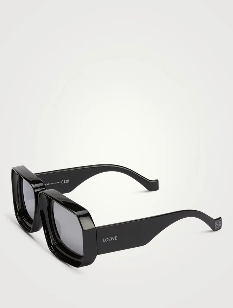 Characterized by thick, square rims, these bold dive-in-mask style sunglasses are enhanced with a bevelled front and broad logo-stamped temples.