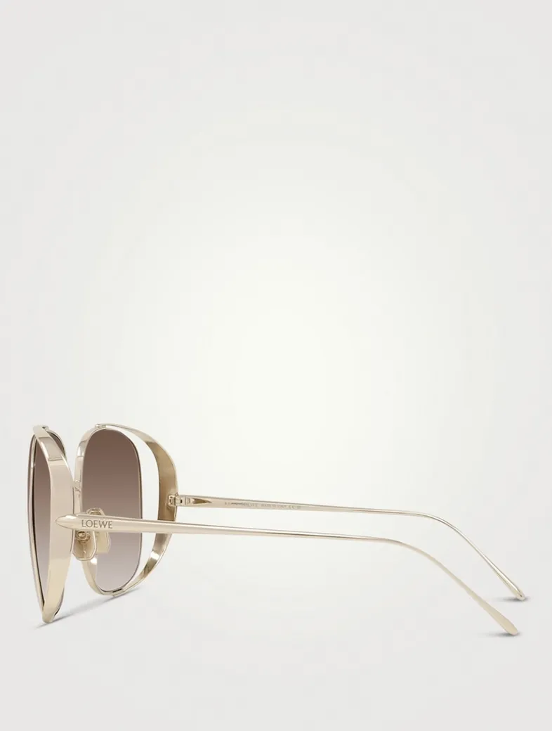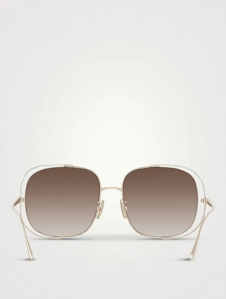 Constructed with a sleek metal frame, these oversized square sunglasses are designed with a floating lens effect.