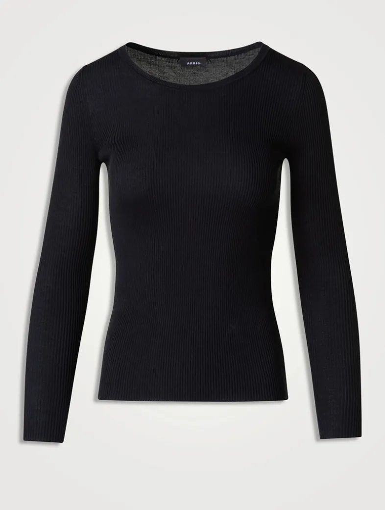 Knit from a silk-cotton blend, this fitted pullover is detailed with a flattering rounded neckline, long sleeves, and seamless rib. A versatile and timeless wardrobe staple.