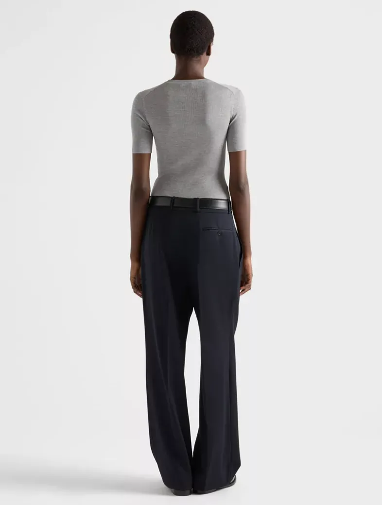 Short sleeves Ribbed knit Slim fit Ribbed knit crew neck Regular shoulder Intarsia logo