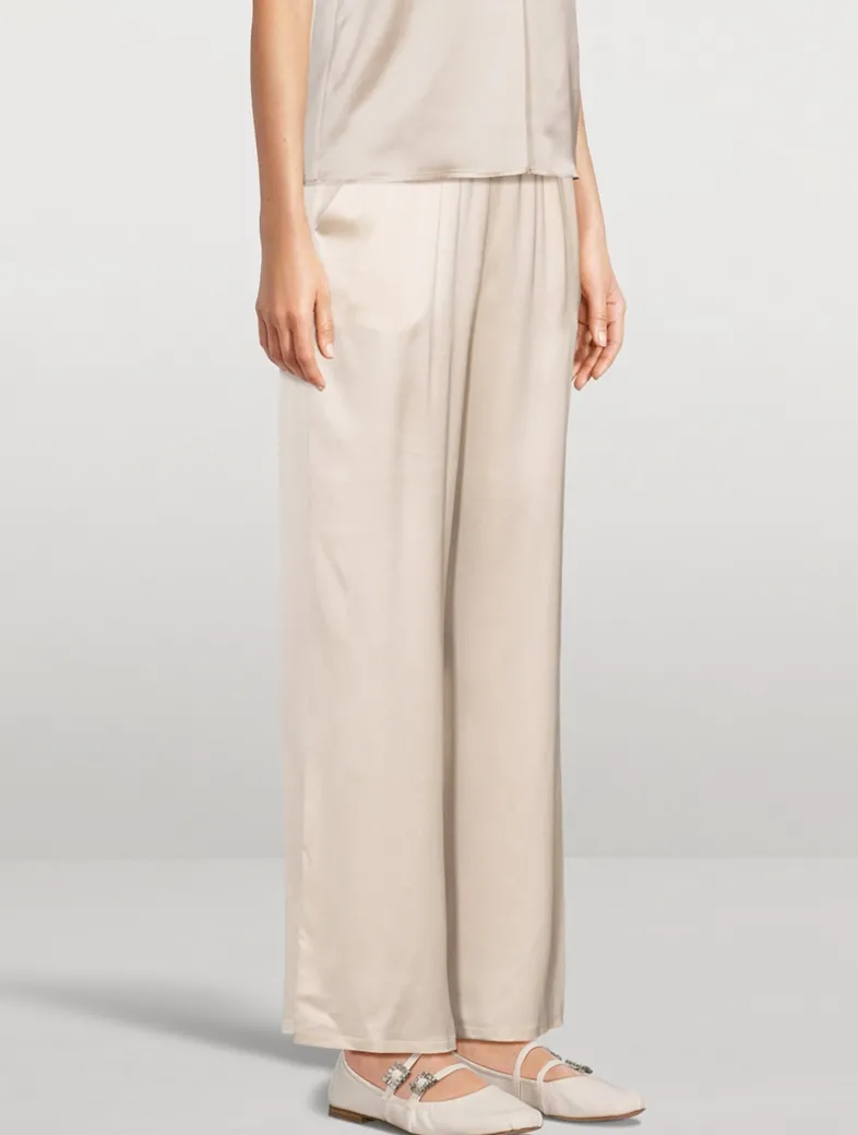 Easy and elegant, these fluid silk pants make the most of their luxe material with a wide leg that accents your movement. The simple elastic waistband adds extra comfort to the Italian design.
