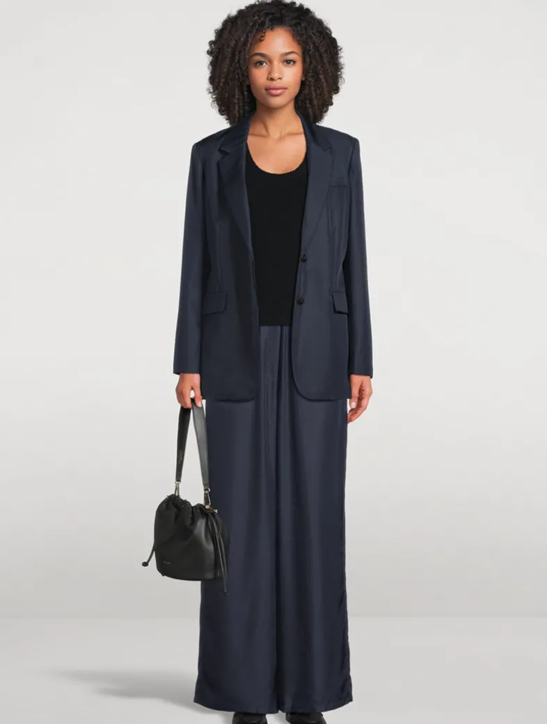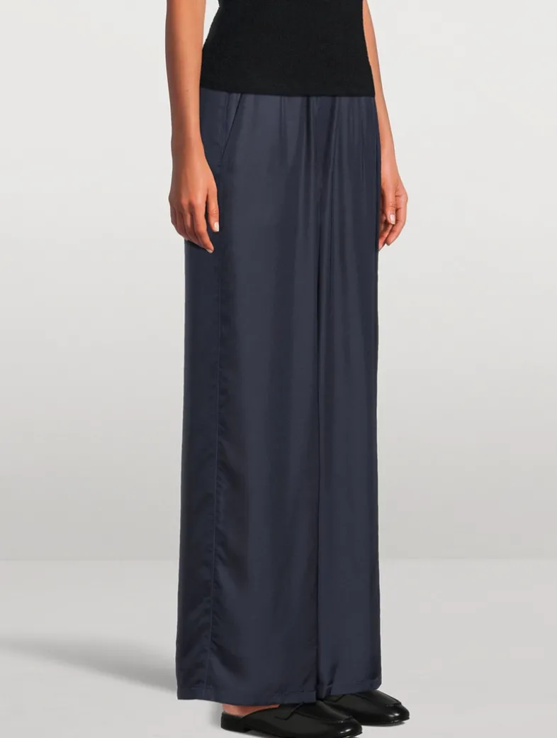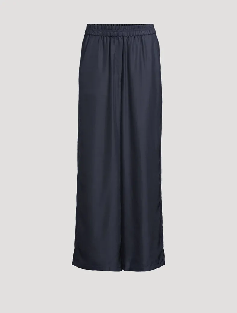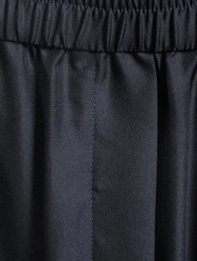 Designed for easy wear, these full-length track pants feature an elasticized waistband and side pockets, crafted from washable silk twill in a versatile, all-season weight.