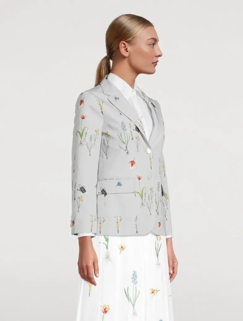 A wearable garden. Bloom with the season in this enchanting cotton and linen-blend blazer, designed to capture the essence of a garden in full bloom. Crafted from breezy fabric with satin stitch embroidery, it exudes effortless elegance and refined sophistication.