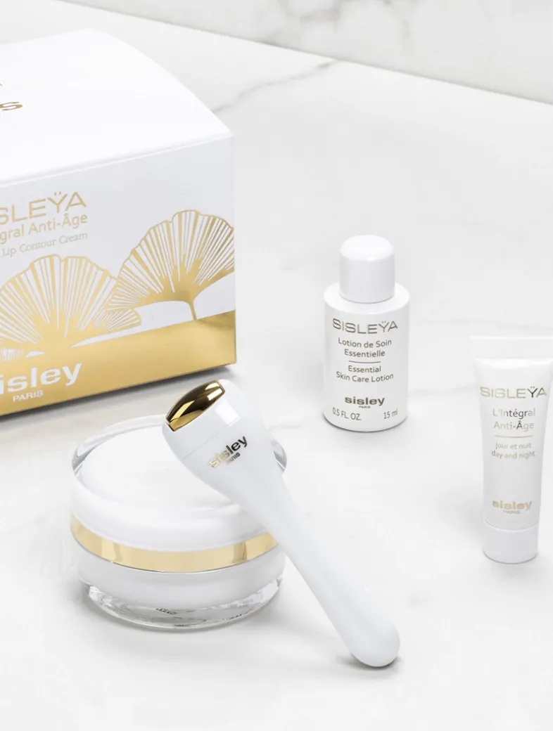The Sisleÿa L’Intégral Anti-Âge Eye and Lip Contour Cream Discovery Program contains a full size Sisleÿa L’Intégral Anti-Âge Eye and Lip Contour Cream, and massage tool. The Eye and Lip Contour Cream. It targets the look of puffiness and dark circles. Morning and evening. Plus deluxe samples of the Sisleÿa Essential Skin Care Lotion, and Sisleÿa L’Intégral Anti-Âge.