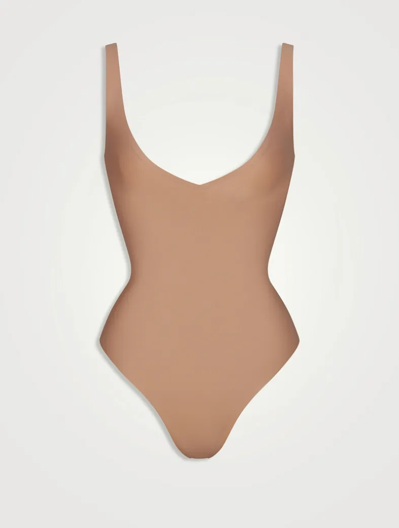Wear this sexy plunging thong bodysuit alone with your favourite bottoms or under dresses to accentuate your curves and snatch your silhouette. Features unlined cups to flatter your bust, adjustable back straps that you can wear cross back, and a bottom gusset with snap closure. Fits true to size. Size down for more compression.