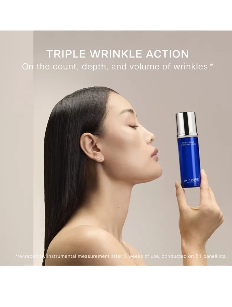 Skin Caviar Hydro Emulsion is a lightweight fluid moisturizer powered by Caviar Hydroessence to support skin’s epidermal structure. It drenches skin with instant and lasting hydration, while fine lines and visible wrinkles appear faded. Day after day, firmness is returned and youthful beauty is revealed.