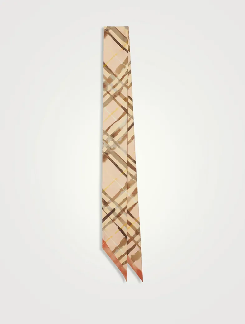A skinny scarf made in Italy from silk twill. The design is printed with a watercolour-effect Burberry Check and reverses to a solid colour featuring our Equestrian Knight Design.