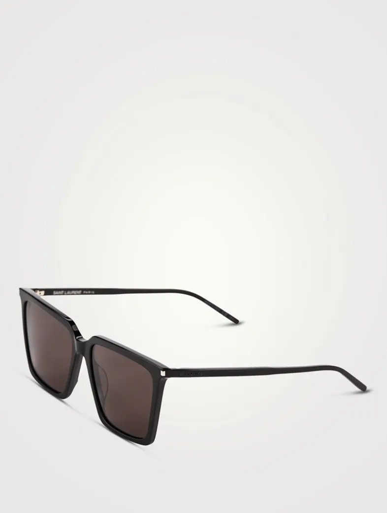 Oversized and bold, these squared sunglasses are masterfully crafted in Italy from 100% acetate with engraved SAINT LAURENT logo lettering at the temples.