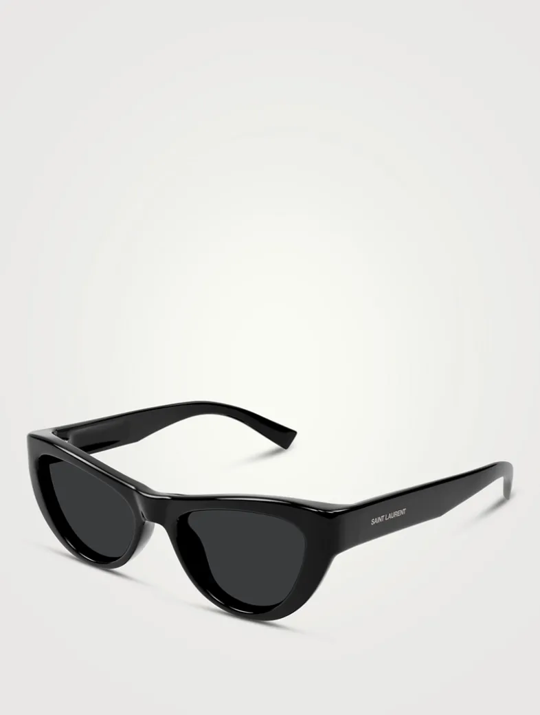 Characterized by a bold acetate frame, these cat-eye sunglasses have a sleek, upswept lens shape. SAINT LAURENT engraving subtly brands the temples.