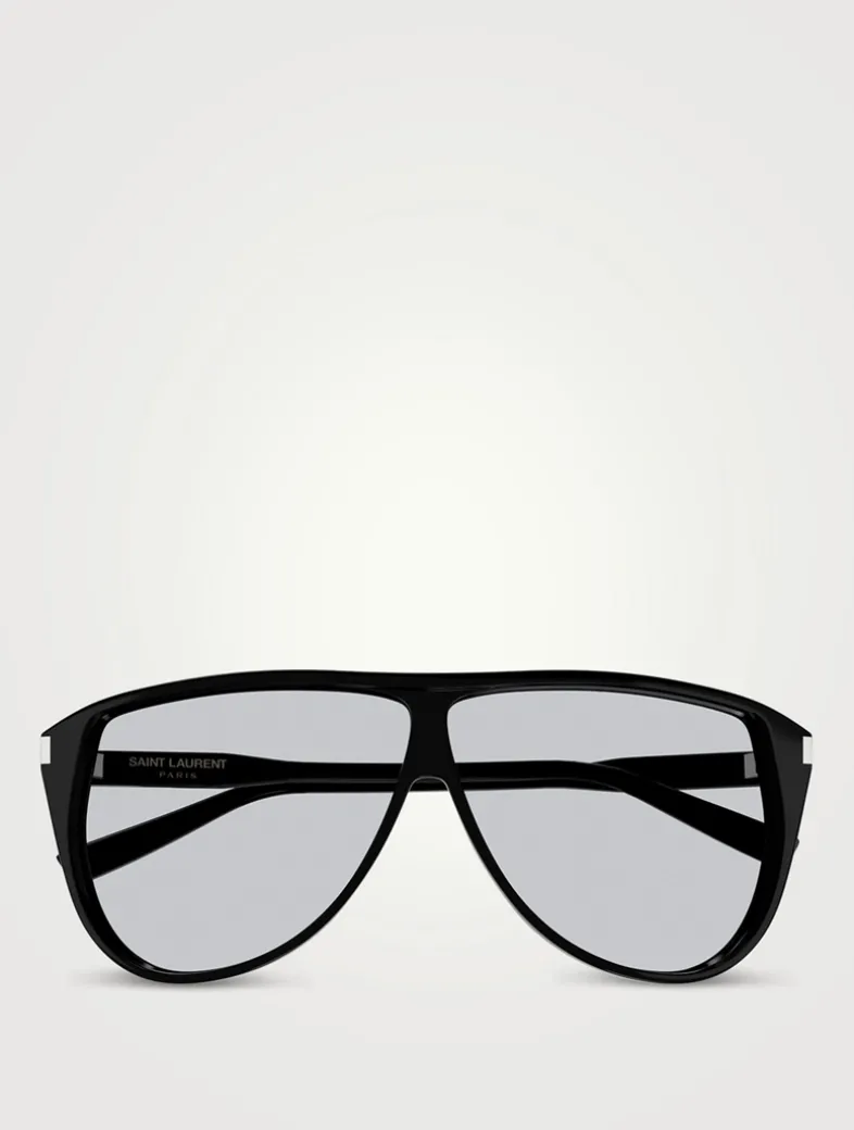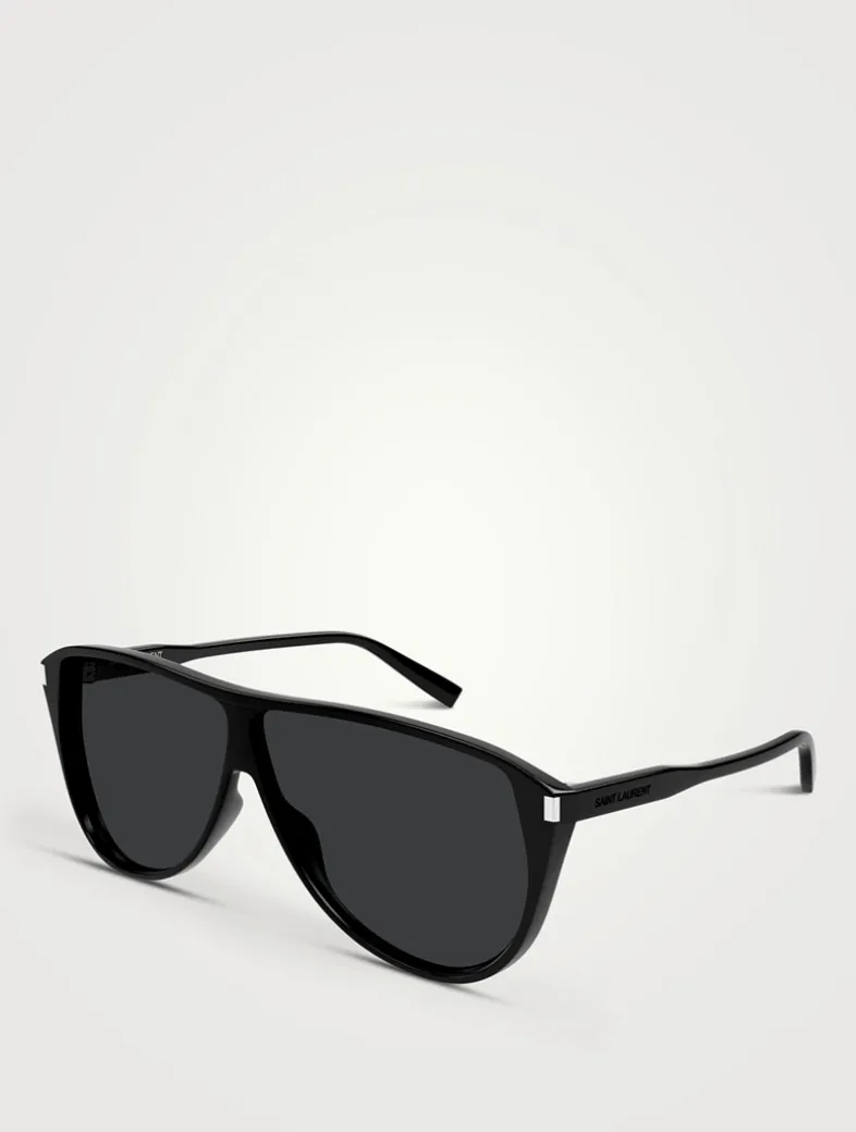 Made in Italy from recycled acetate, these shield sunglasses are detailed with sleek metal hinges.