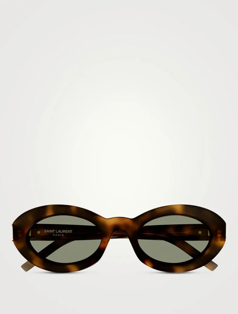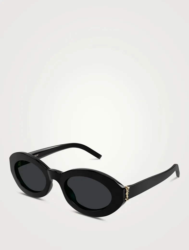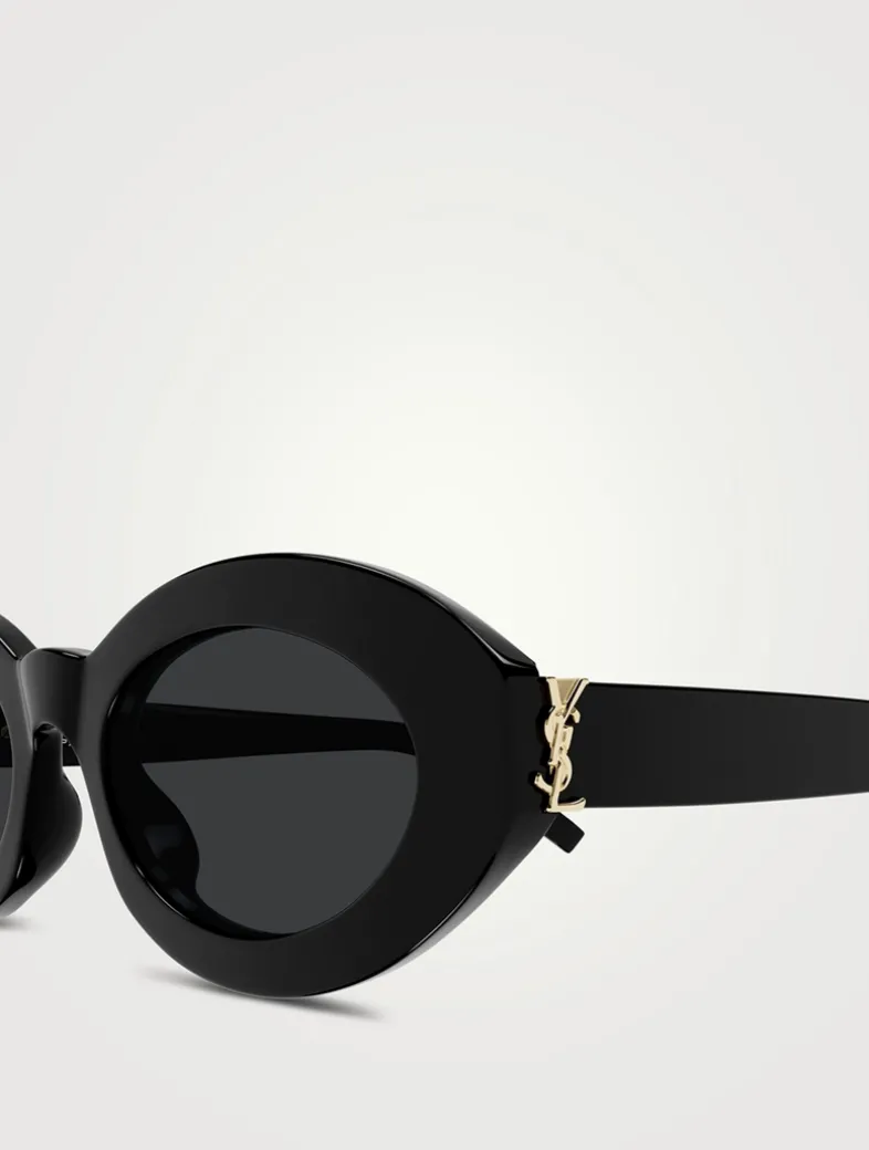 Featuring a graphic oval frame in glossy acetate, these retro-inspired sunglasses are adorned with metal YSL hinges.