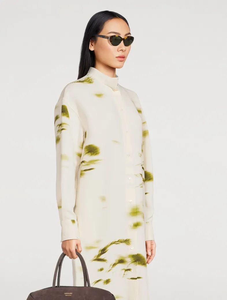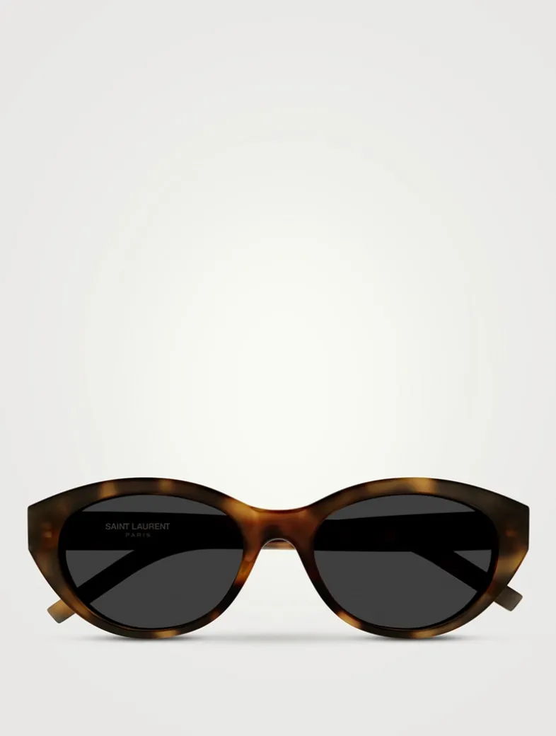 Flaunting a rounded cat-eye shape, these sunglasses are made in Italy with recycled acetate frames, nylon lenses, and wide temples. Finished with the iconic Cassandre monogram hinge at the temples.