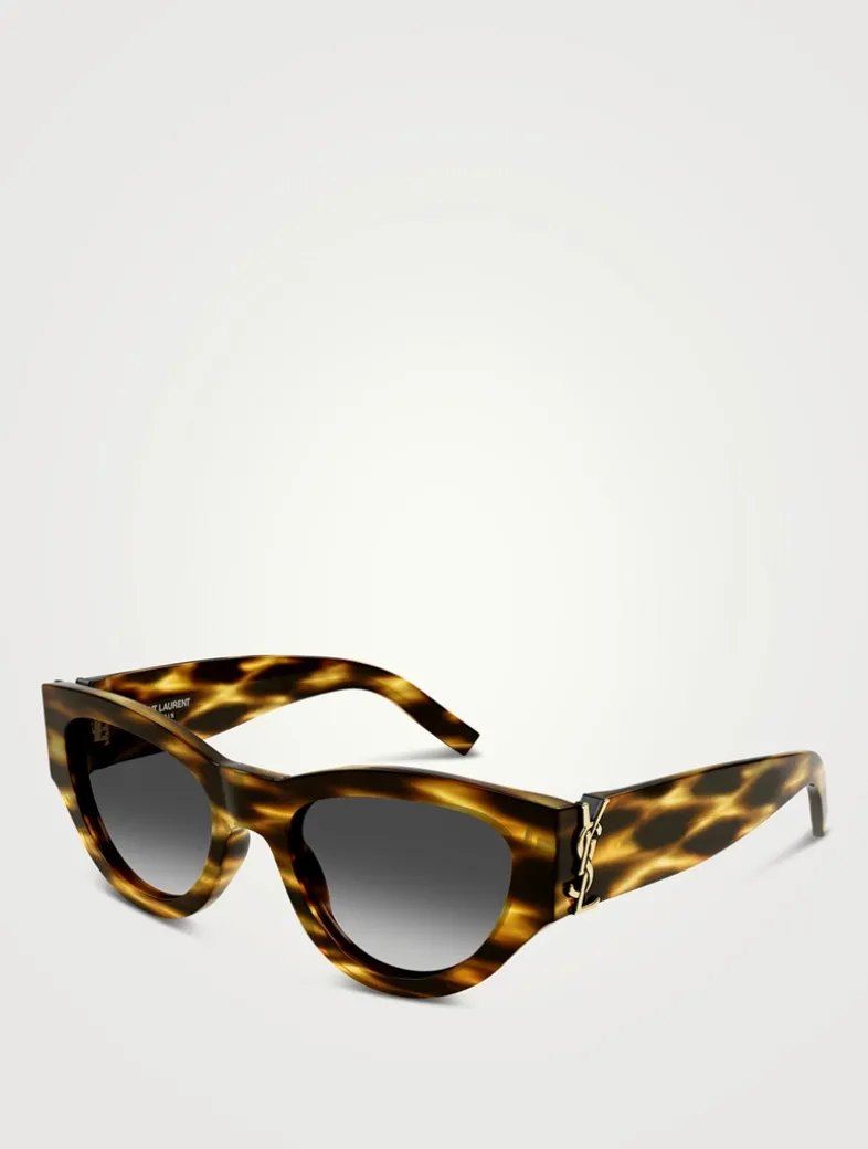 Crafted with thick recycled acetate frames, these cat-eye sunglasses are designed with nylon lenses and YSL initials on the temples.