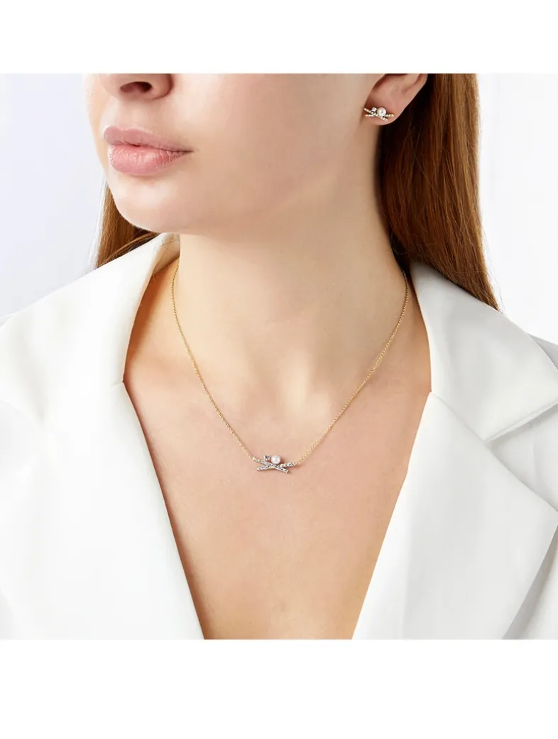 Part of the Sleek collection, this necklace exudes creativity and confidence. The intricate design features a luminous Akoya pearl in the centre of a scintillating diamond cross.