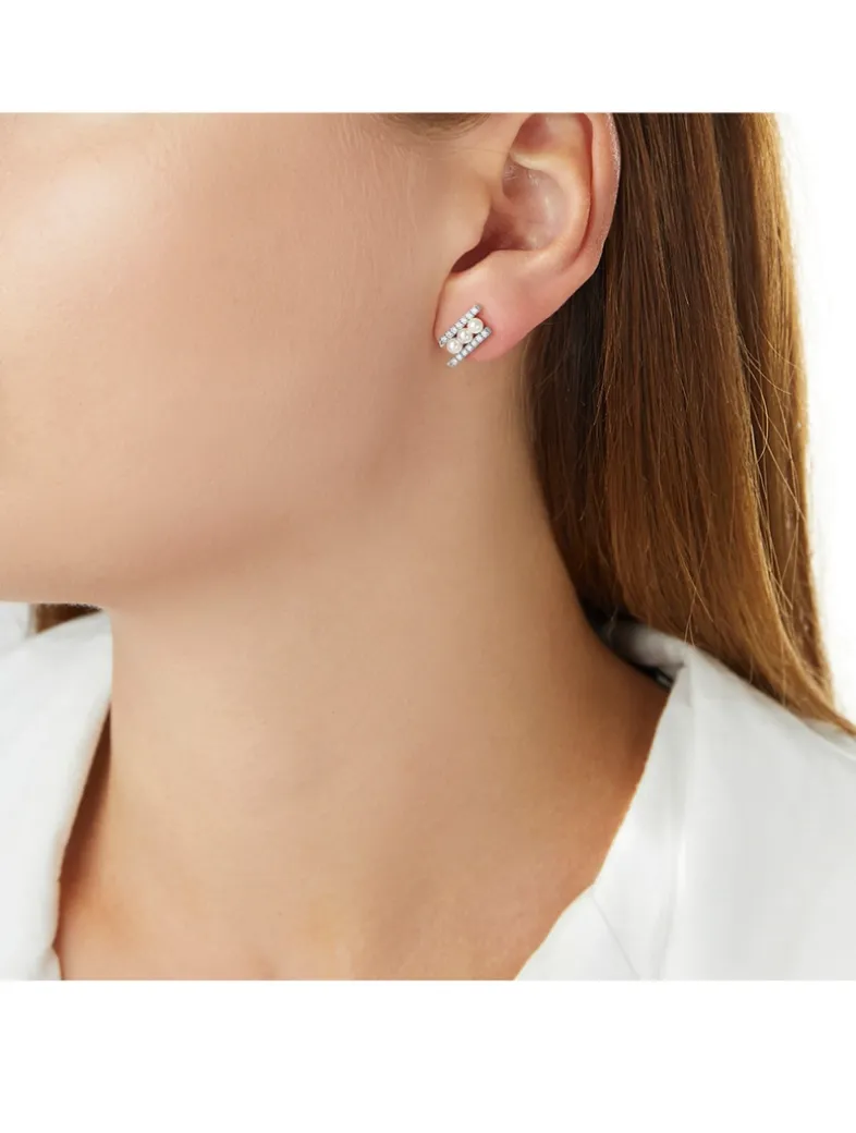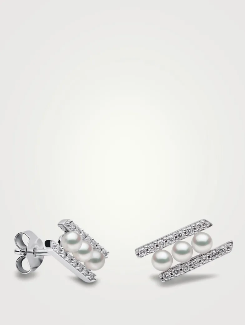 YOKO LONDON’s Sleek Collection is designed to be worn anytime, anywhere. These pearl stud earrings are crafted in 18k white gold, and features Akoya pearls accented by delicate diamonds.