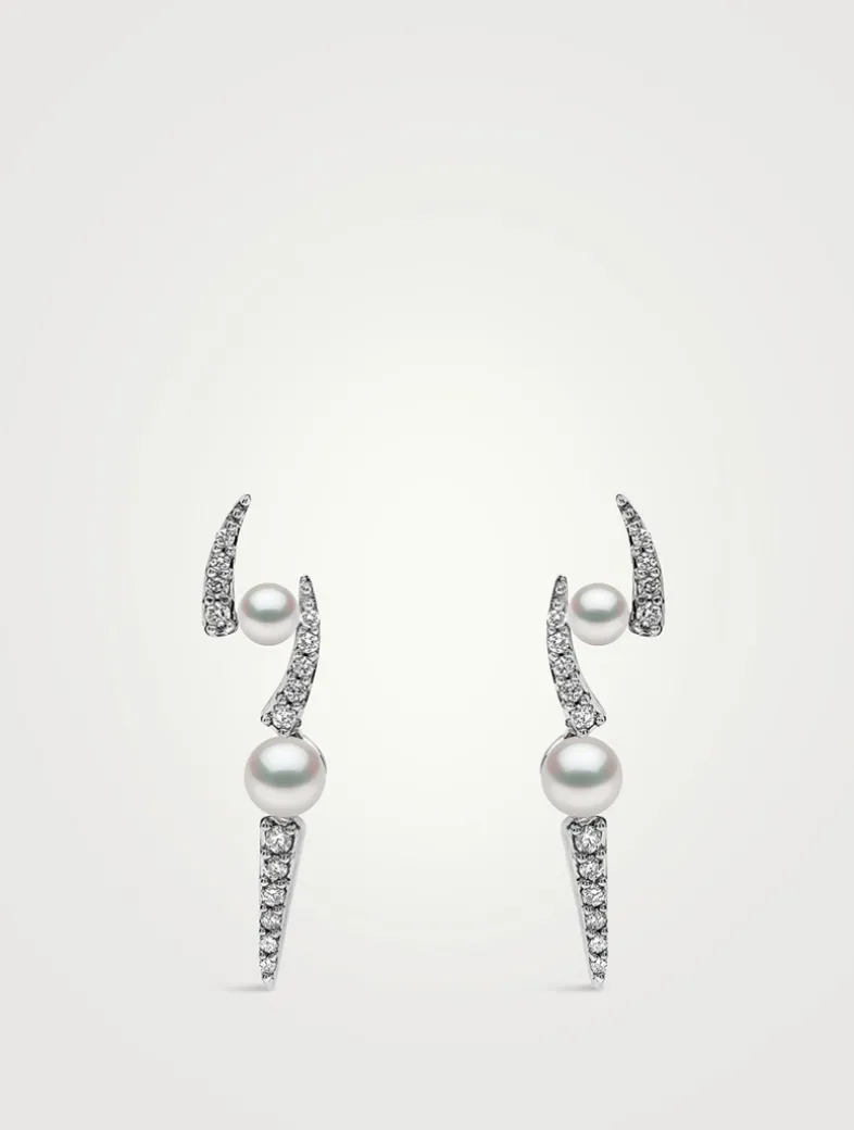 Sleek 18K White Gold Akoya Pearl Earrings With Diamonds