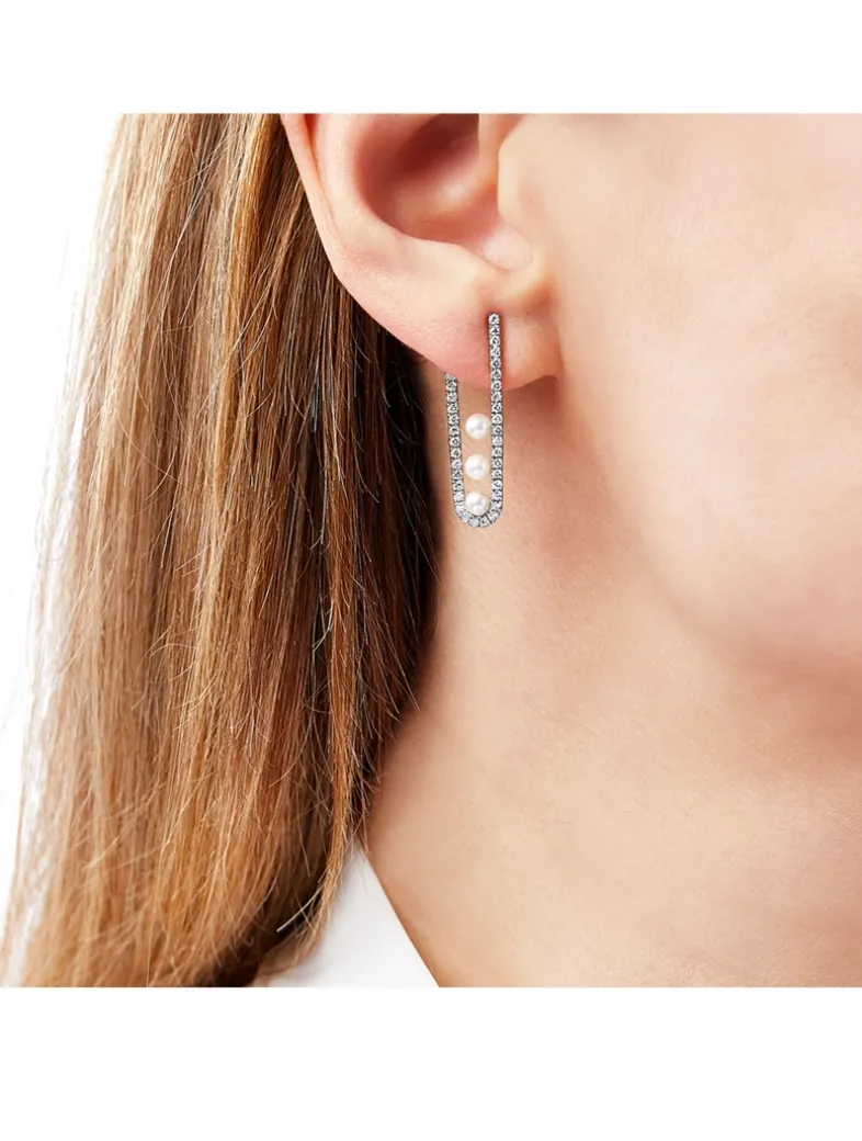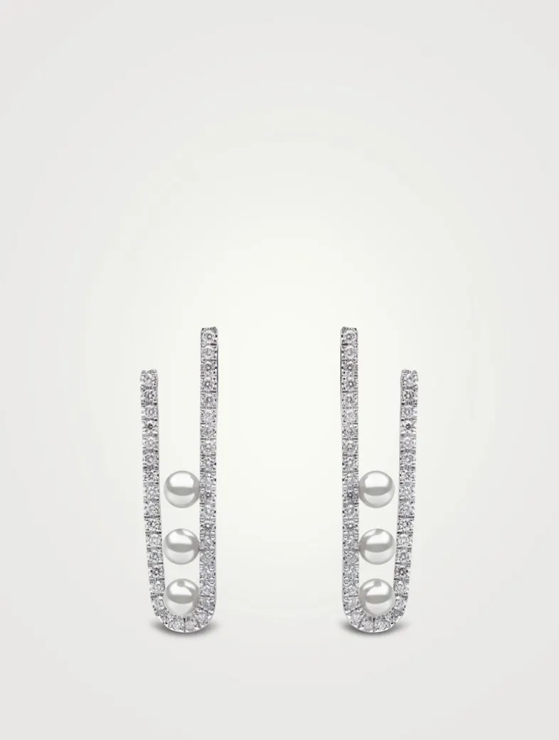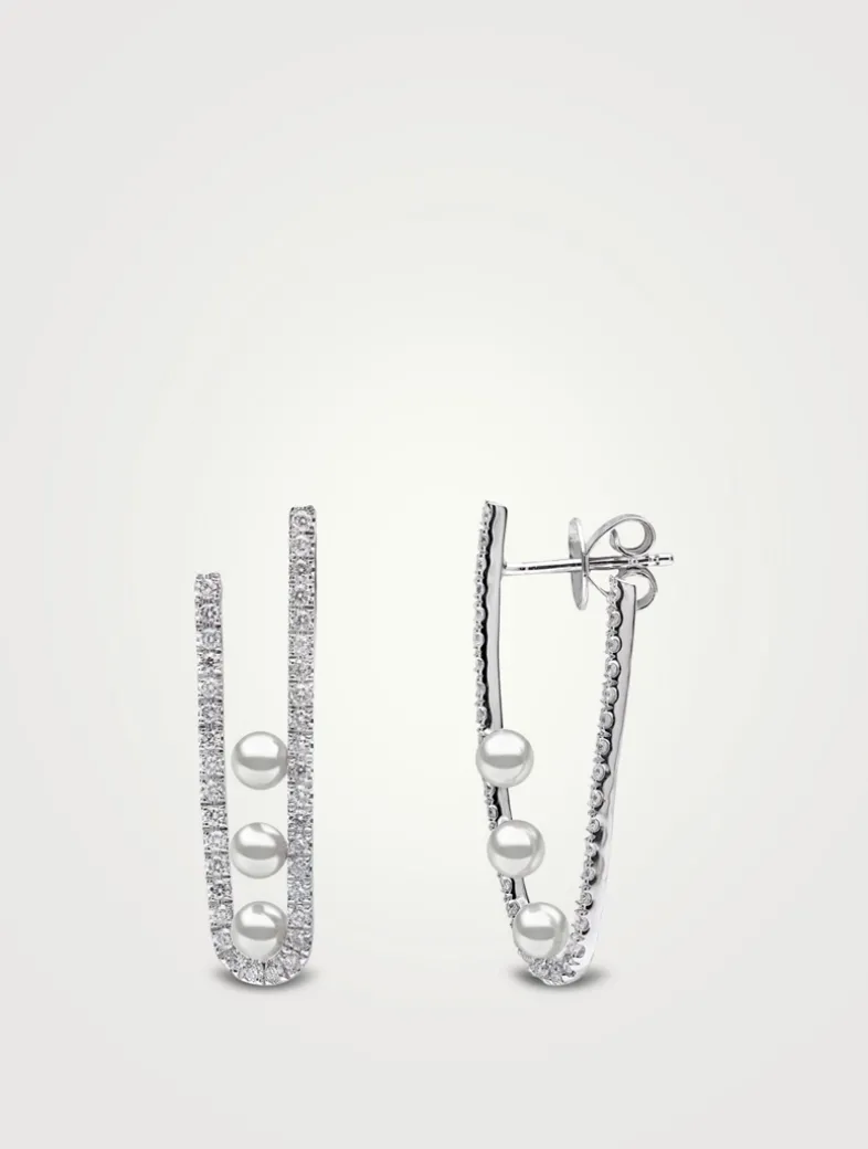 YOKO LONDON’s Sleek Collection is designed to be worn anytime, anywhere. Made to sweep from the front of the lobe to behind it, these 18k white gold earrings are designed with Akoya pearls, set in the centre of a clean diamond curve.