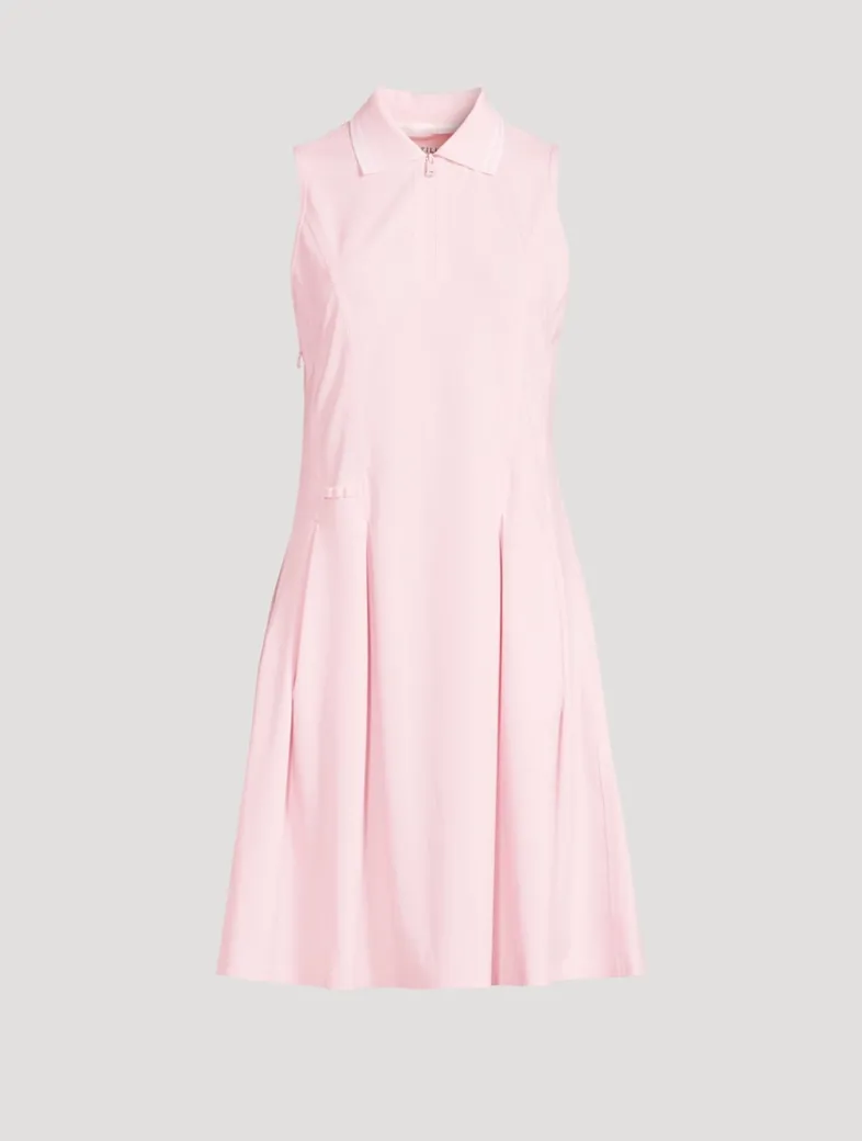 A modern look inspired by classic golf dress, this sleeveless dress is made using waterproof stretch nylon with welded seams for protection on the course that maintains moisture wicking ability for additional comfort on hot days.