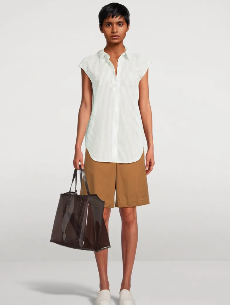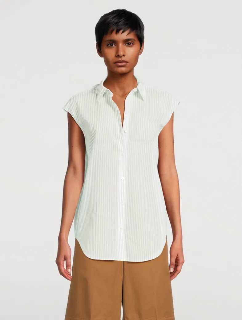 Punctuated with a pointed collar, this button-up shirt is finished with a curved hem and tailored along a slim fit. This style features a striped print on a stretch cotton base.