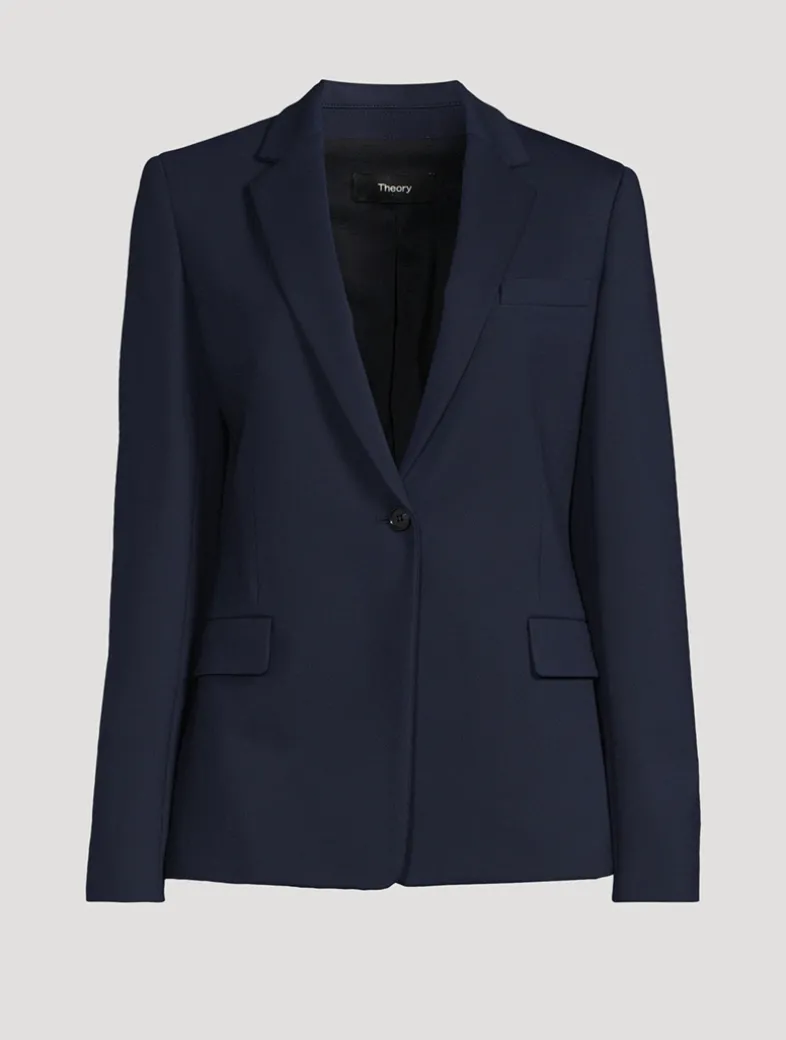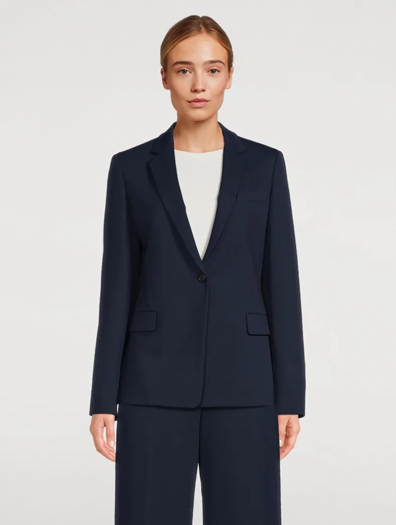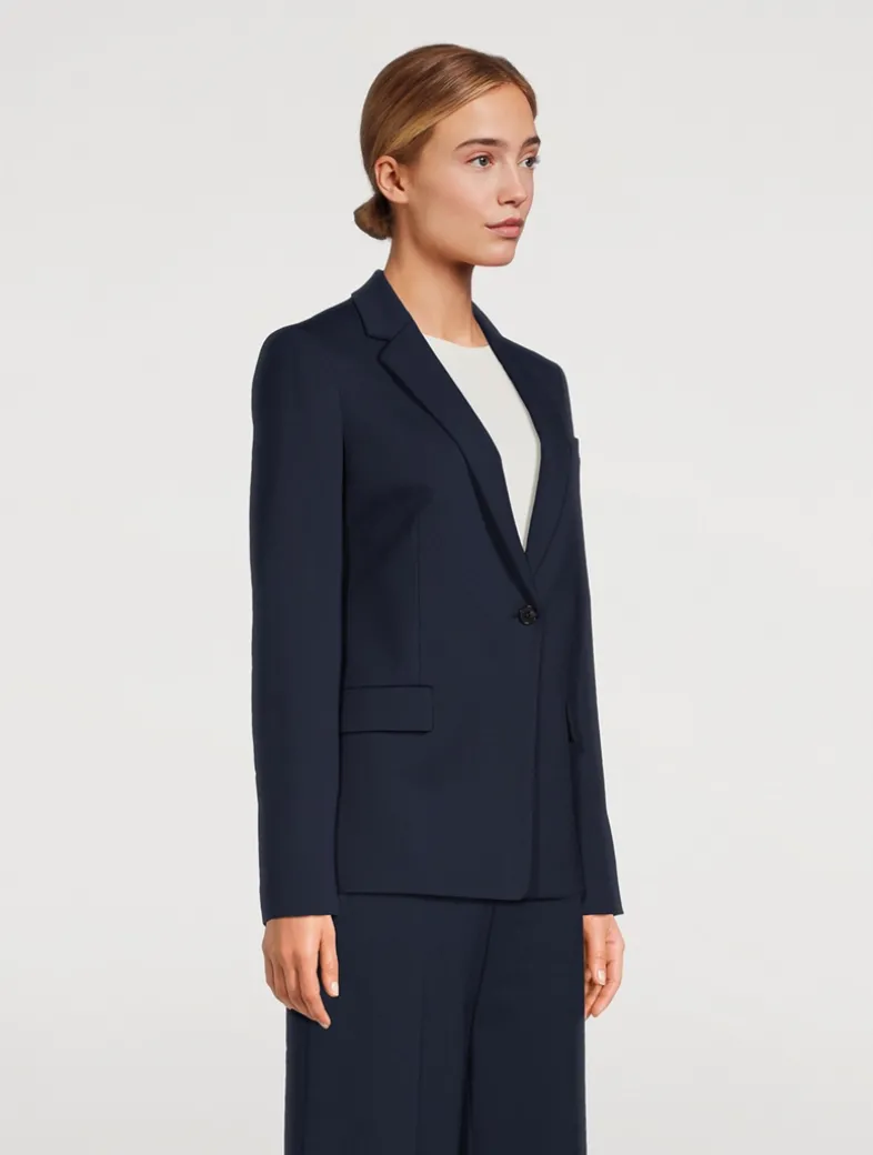 Tailored with a slim silhouette and a nipped-in waist, this chic blazer is detailed with notch lapels, a single-button closure, and flap pockets.