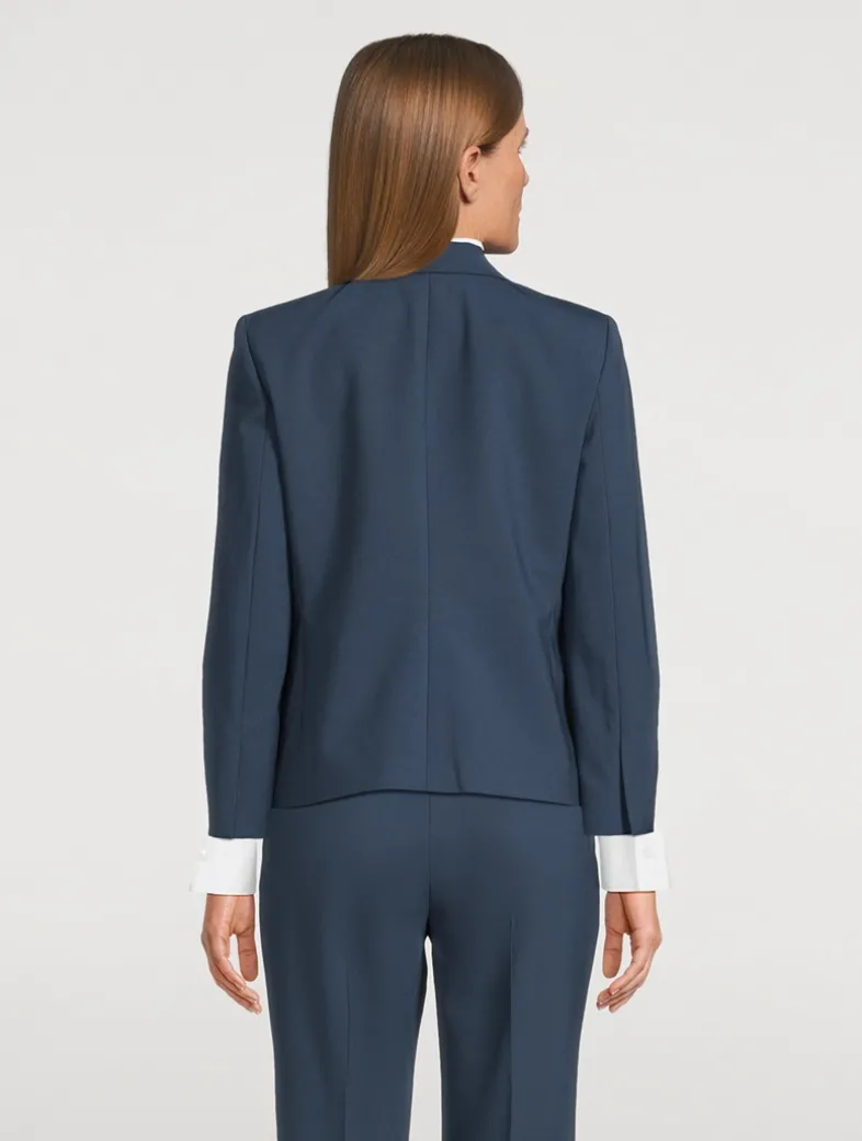 This blazer goes from day to night in a strong, feminine silhouette featuring peak lapels, a cutaway front, and flattering nipped-in waist. Theory is committed to making a positive impact on the people who wear their clothes, the industry, and our planet, beginning with their Good fabrics. Consciously manufactured from start to finish, Good Wool is crafted with premium merino wool.