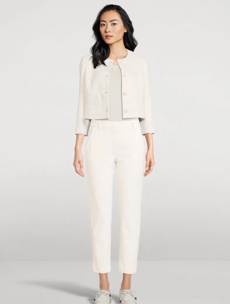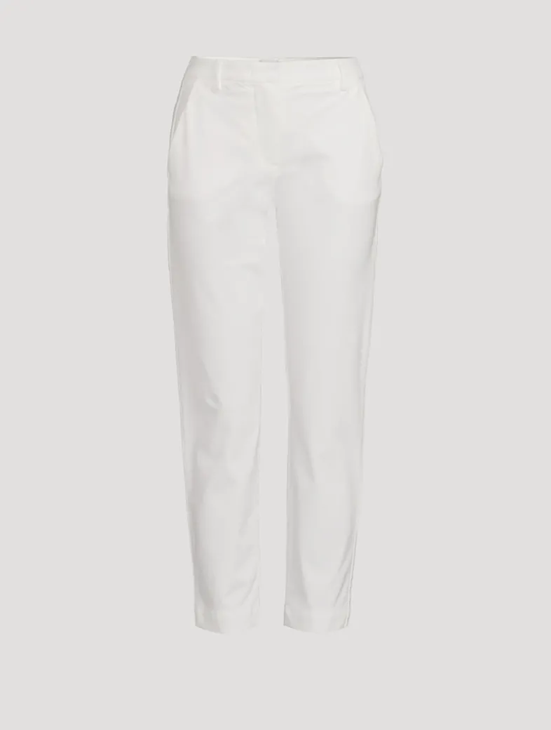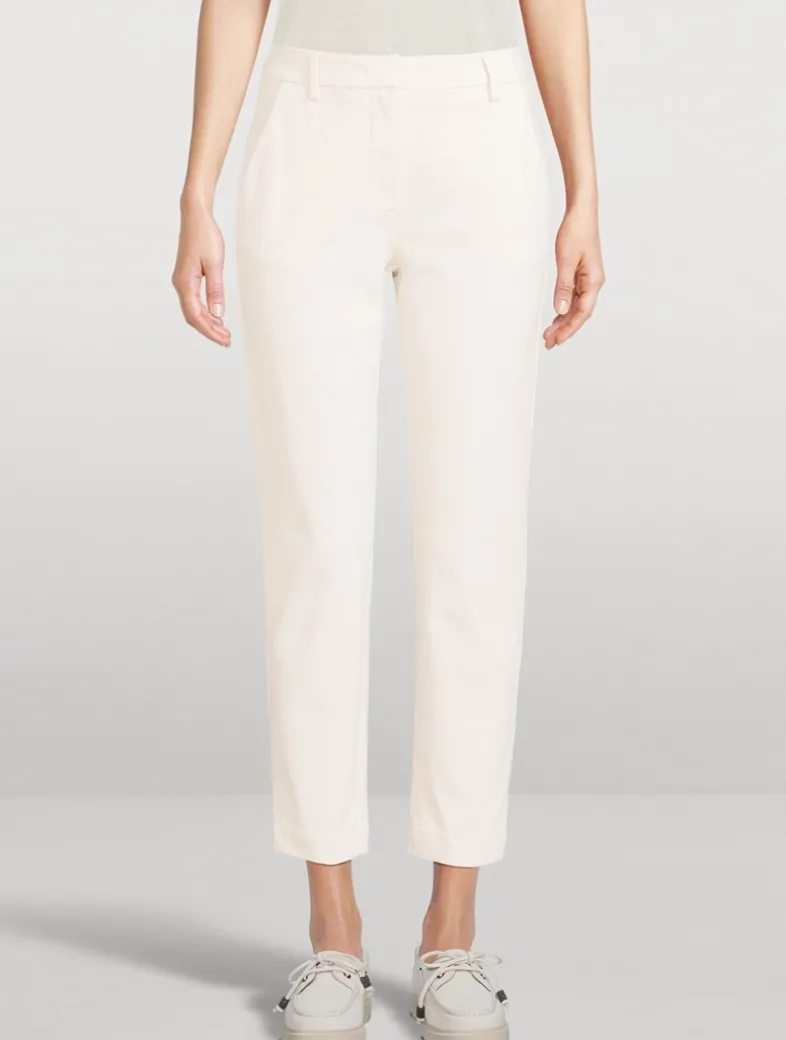 Made from cotton with a hint of stretch, these pants have a slim-leg design topped by a waistband with belt loops. The ankle-length pair are complete with side slip pockets and welt pockets at the rear.