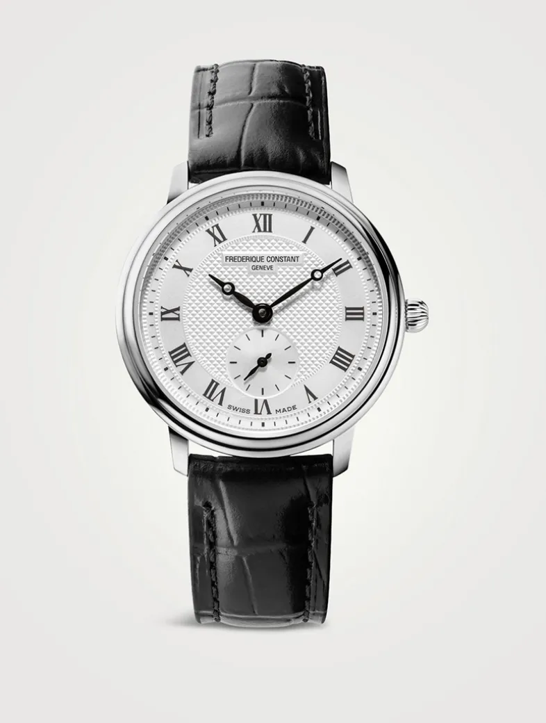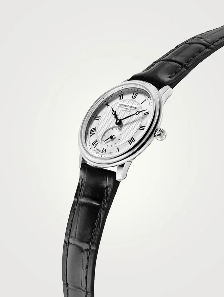 This Slimline Ladies’ Small Seconds has a small second hand with a white dial,