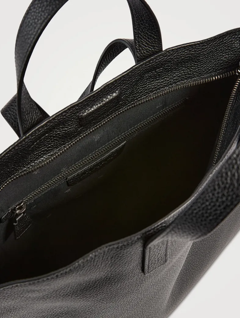 Versatile and timeless, the Ai, presented here in grained leather, is a work of art with great functionality, offering three convertible looks. When opened, it is a rectangular shopper, ideal for carrying documents or a small laptop, with the corners folded inside and secured with the turn lock, it becomes the Pure Trapezoid Backpack, and with the corners folded on the outside and closed with the turn lock, it is the Signature Backpack, its most elegant shape. This bag features adjustable straps, one inside zip compartment, two organizational pockets, and includes a removable leather zip pouch.