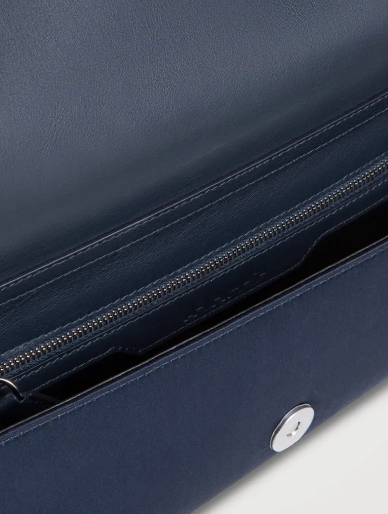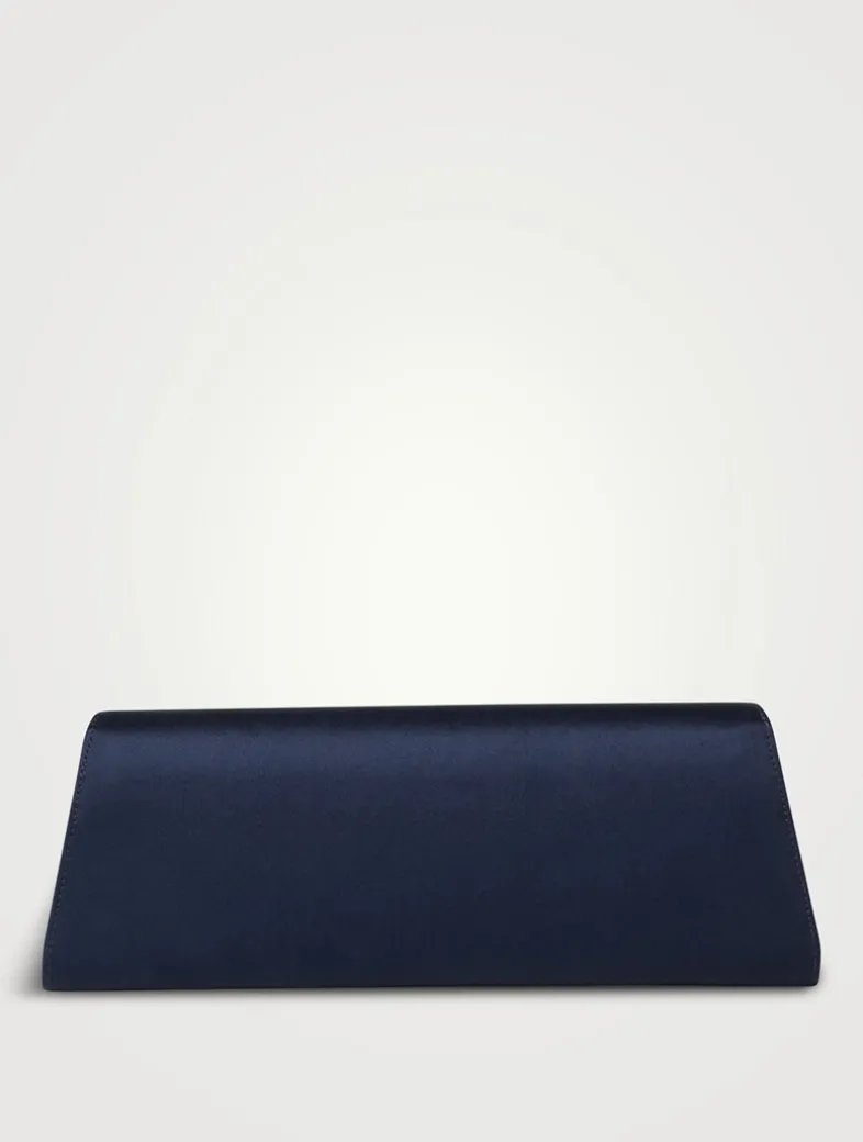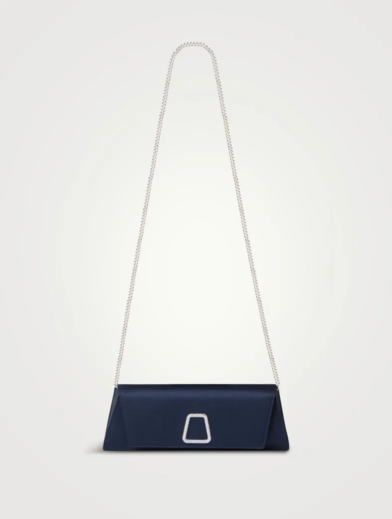 The perfect companion for your evening looks. This leather-trimmed clutch is crafted from luxe satin embellished with signature trapezoid crystal-encrusted hardware. Carry it by hand or wear it over the shoulder using the detachable chain strap. It has one main compartment with an interior zip pocket.