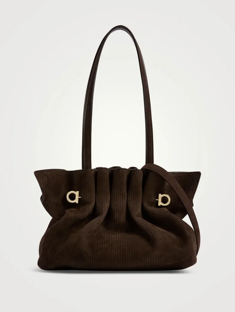This shoulder bag reinterprets an archive design with a modern edge. The clean-cut silhouette is enhanced by soft leather, gathered at the top with a Gancio pin for a bold yet effortless look.