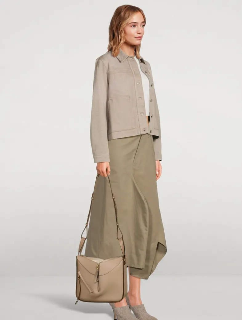 A multifunctional bag with supple side panels that release to change its shape. Looped straps allow the bag to be worn in multiple ways. This small version is crafted in classic calfskin. It has an external zip pocket and two internal slip pockets.