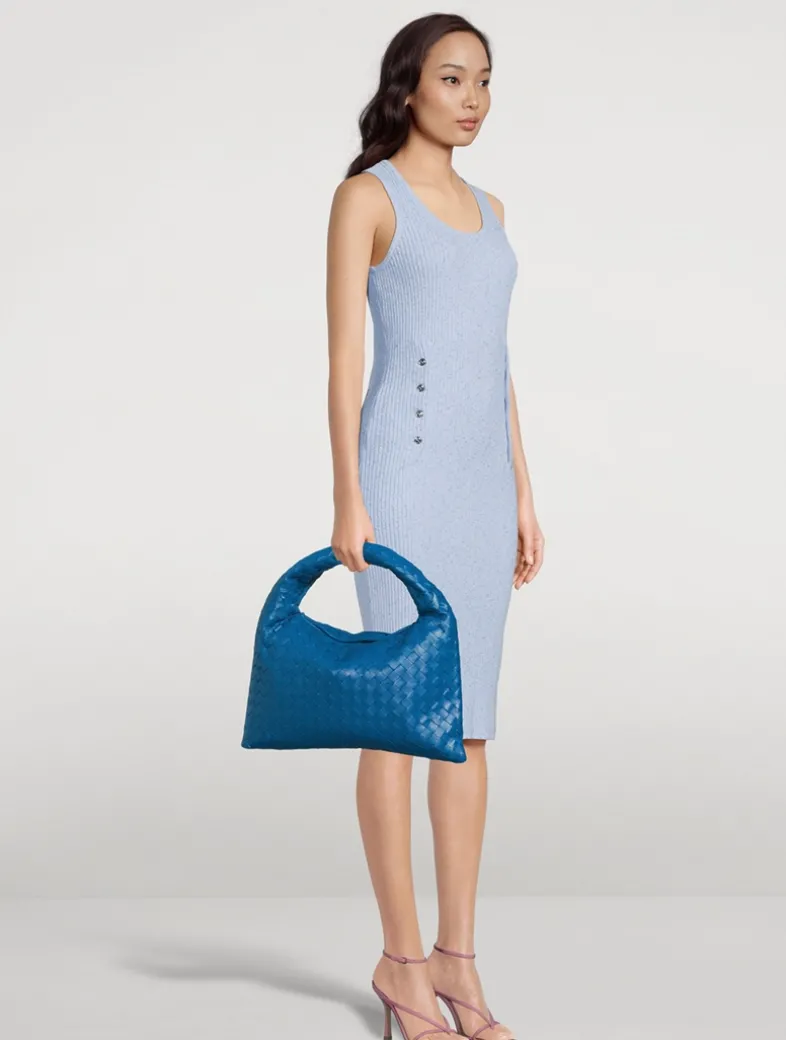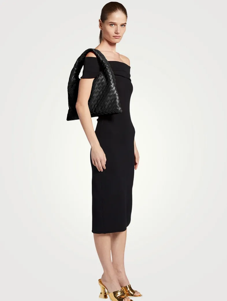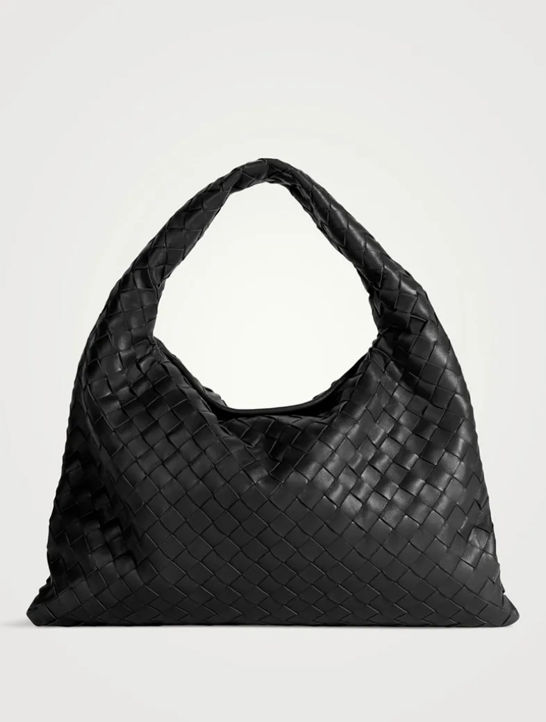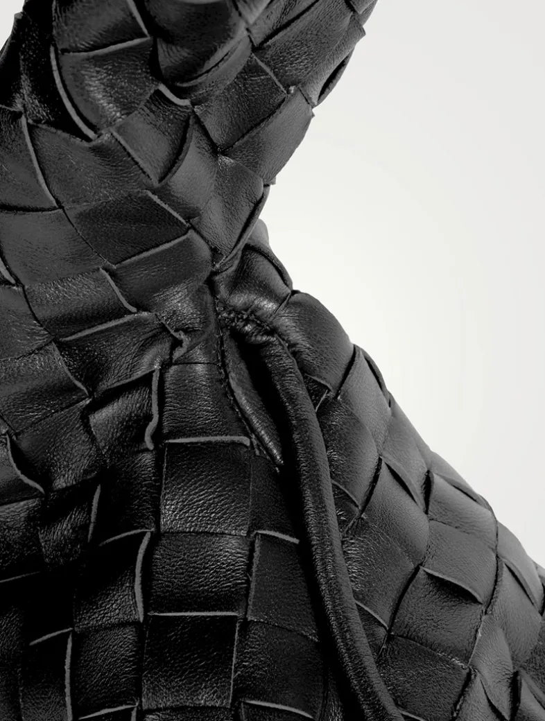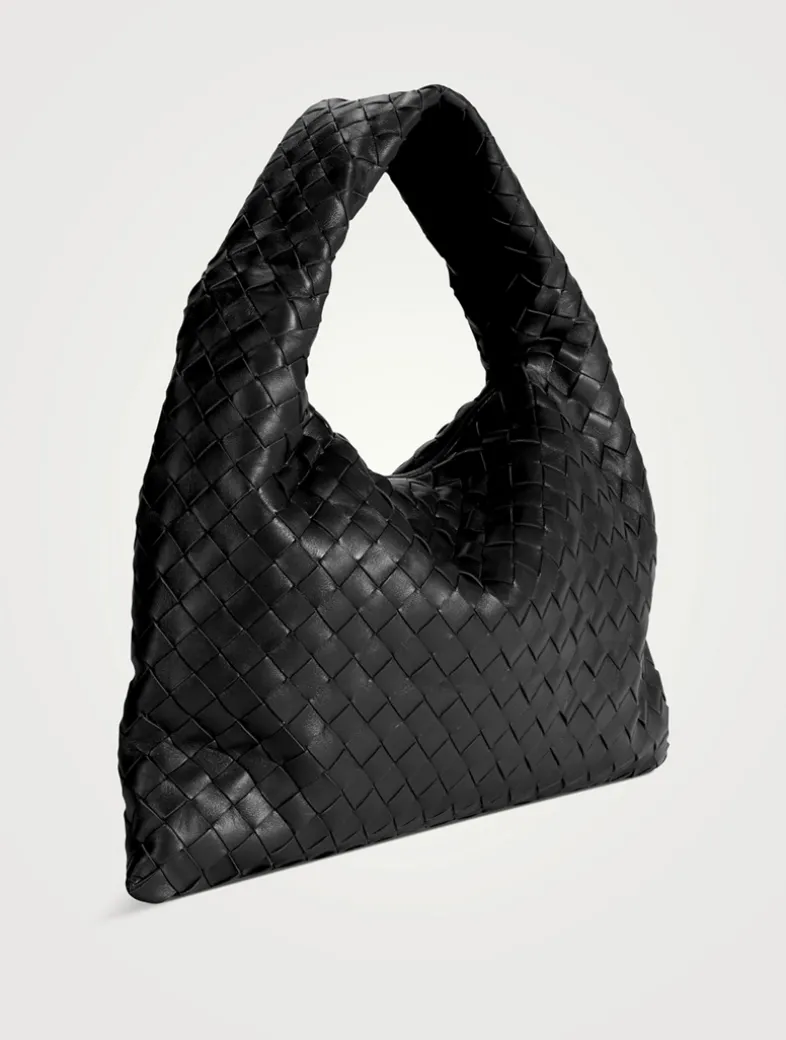 Realized with Bottega Veneta’s intrecciato craftsmanship in calfskin leather, this bag tucks neatly under the arm. Featuring a fixed shoulder strap, it has a single zippered pocket at the interior and a secure magnetic closure.
