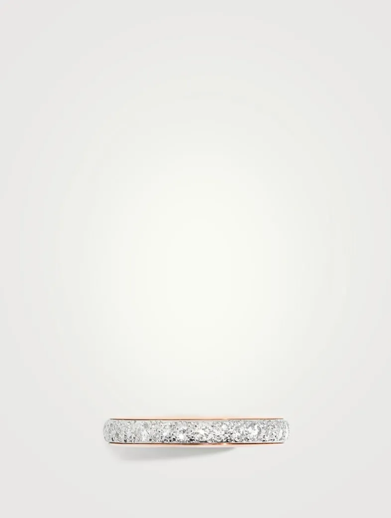 Exhibiting half a century of savoir-faire, the Iconica collection honours POMELLATO’s fine goldsmithing skills and Milanese roots. Set with 38 sparkling diamonds, this lightweight and stackable band is easy to mix-and-match.