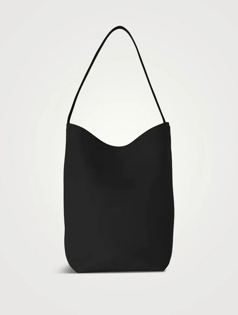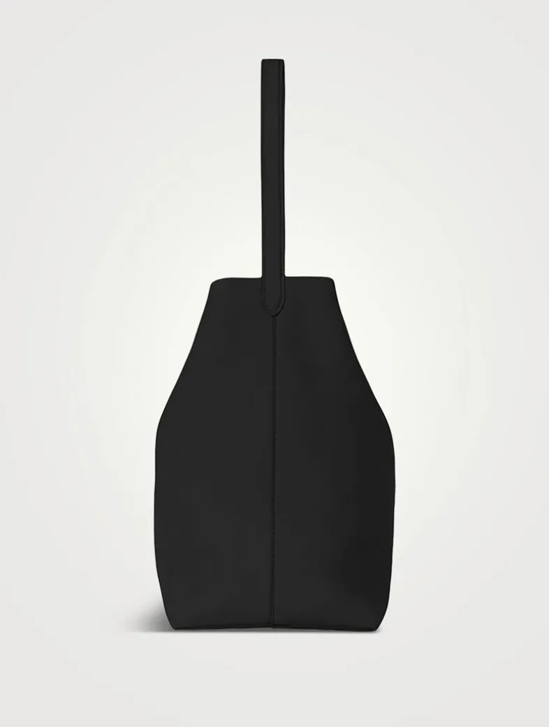 Made from plush suede, this deep tote bag is styled with a flat leather top handle and an interior toggle closure.