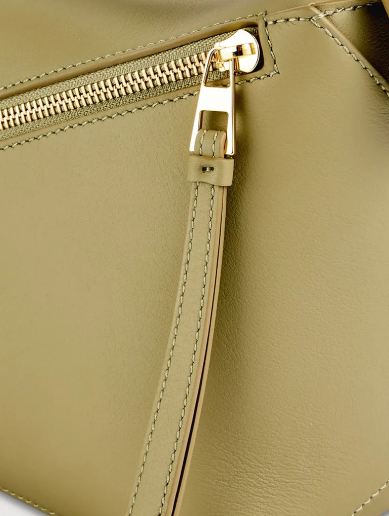 The Puzzle bag is the debut bag for Loewe by Creative Director Jonathan Anderson. A cuboid shape and precise cutting technique create Puzzle’s distinctive geometric lines. This small version is crafted in soft grained calfskin with overlapped edges. It has a versatile design allowing for shoulder, crossbody, top handle or clutch carry. Complete with an exterior zip rear pocket and one internal slip pocket.