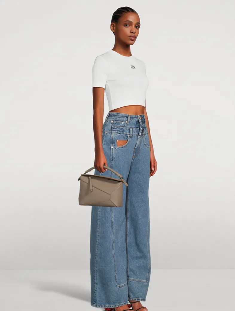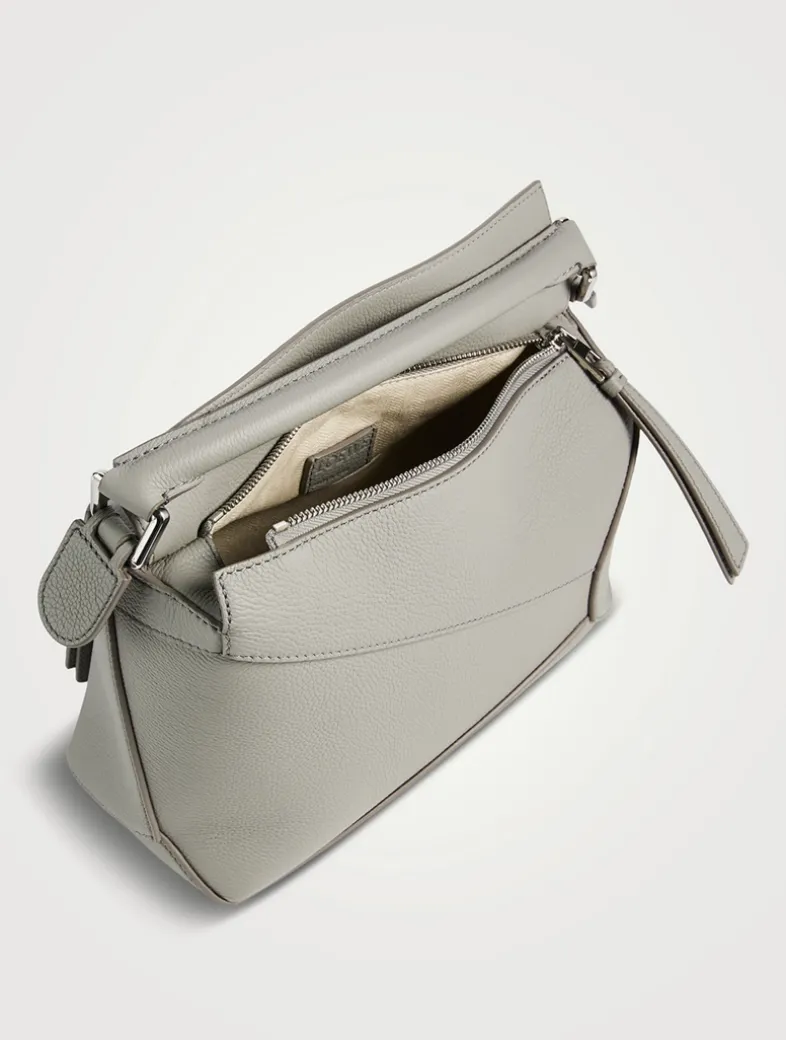 The Puzzle bag is the debut bag for Loewe by Creative Director Jonathan Anderson. A cuboid shape and precise cutting technique create Puzzle’s distinctive geometric lines. This version is crafted in buttery leather with a detachable and adjustable strap for shoulder, crossbody, top handle or clutch carry.