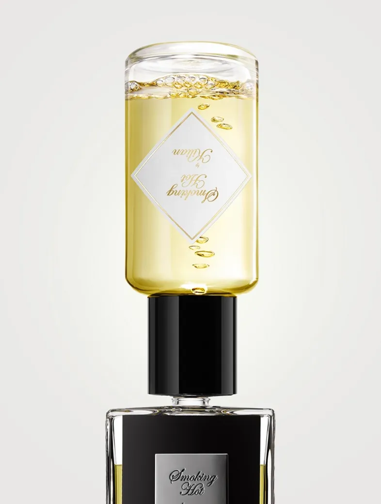 Kilian Hennessy’s Inspiration: At night, there are no rules but one: just be Smoking Hot! KILIAN PARIS newest smoky fragrance is a truly caramelized delight. It features Kentucky Tobacco absolute, infused with a hookah drag of Apple-flavoured shisha tobacco and intense Bourbon Vanilla. Evoking everything from European clubs to Eastern hookah lounges, Smoking Hot redefines what a smokey scent is today, going almost where it’s too hot to handle. The Perfume: The fragrance opens with forbidden fruit: a round Apple Hookah flavour blends with warm Cinnamon Bark essence. In a slow burn, notes of fire-cured Kentucky Tobacco absolute emerge. Harmonized with Oakmoss, this resonant Tobacco absolute leads into a Bourbon Vanilla, with balsamic tonalities. Also known as a Pure Jungle essence™ Bourbon Vanilla, it is of the highest quality Vanilla available, especially intense, and textured. When crossed with Orcanox™, a powerful sensuality comes full circle. A lot of attention is taken in each bottle of KILIAN PARIS refillable perfume, to make them real precious objects. The perfume bottles of The Smokes olfactive family are adorned with a distinctive black lacquer and their bottle has been meticulously engraved on each side, with the representation of the Achilles shield. Like Kilian Hennessy says,