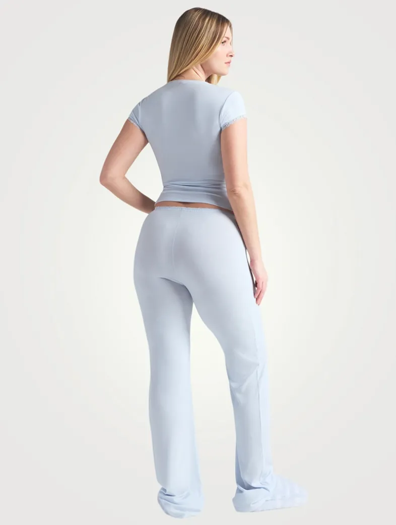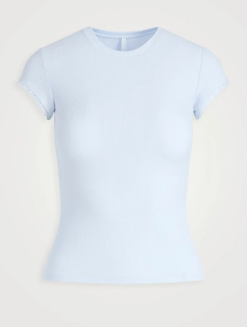 For your best rest and beyond. Made with ribbed modal, this curve-hugging tee is soft enough to sleep in and has lacy trim at the short sleeves for a feminine finish. Hits at the natural hip and fits true to size.