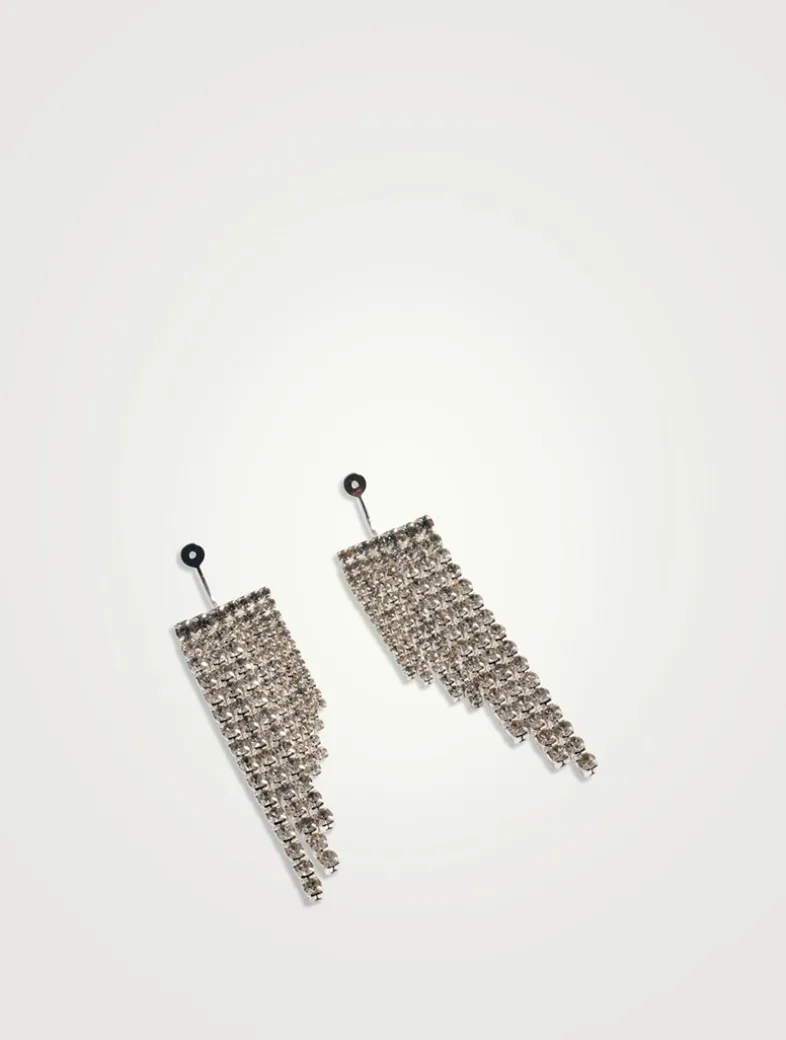 Get a two-in-one look with these classic solitaire stud earrings, featuring a fastener with an ear jacket of pavé crystal gemstone tassels.