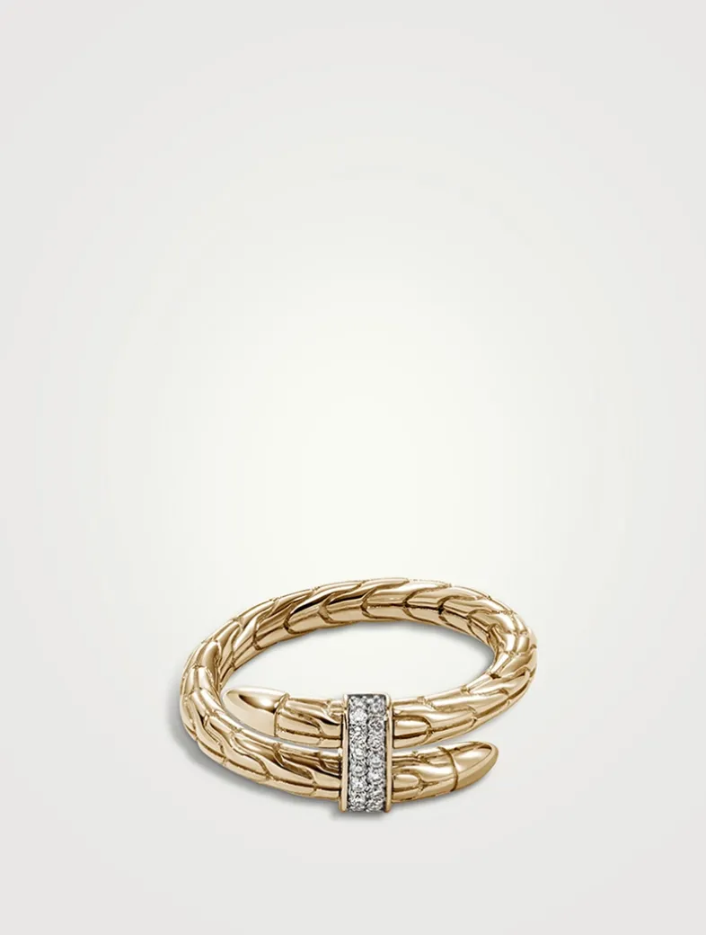 Spear 14K Gold Single Wrap Ring With Pavé Diamonds