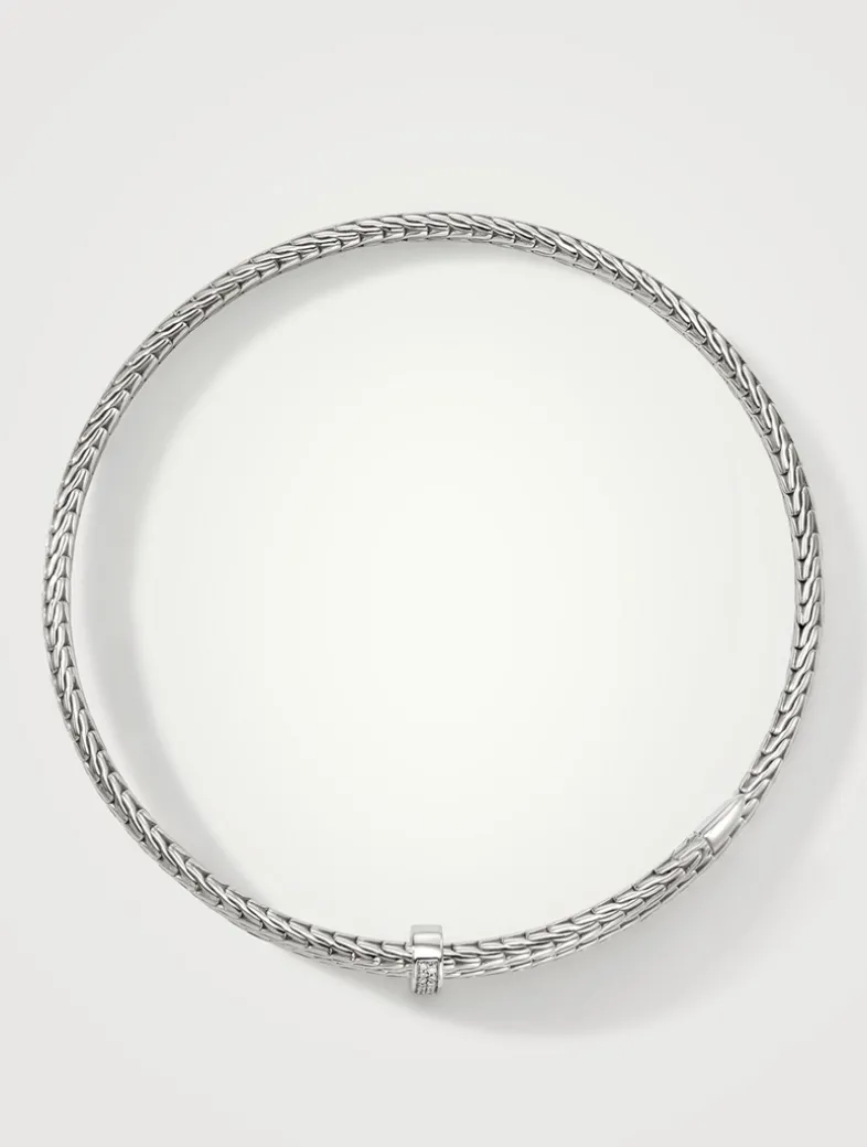 The Spear Collection is a masterful fusion of elegance and edge, flexibility and precision, artisanship and innovation. This coiled spear choker is detailed with pavé diamonds.