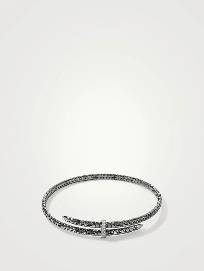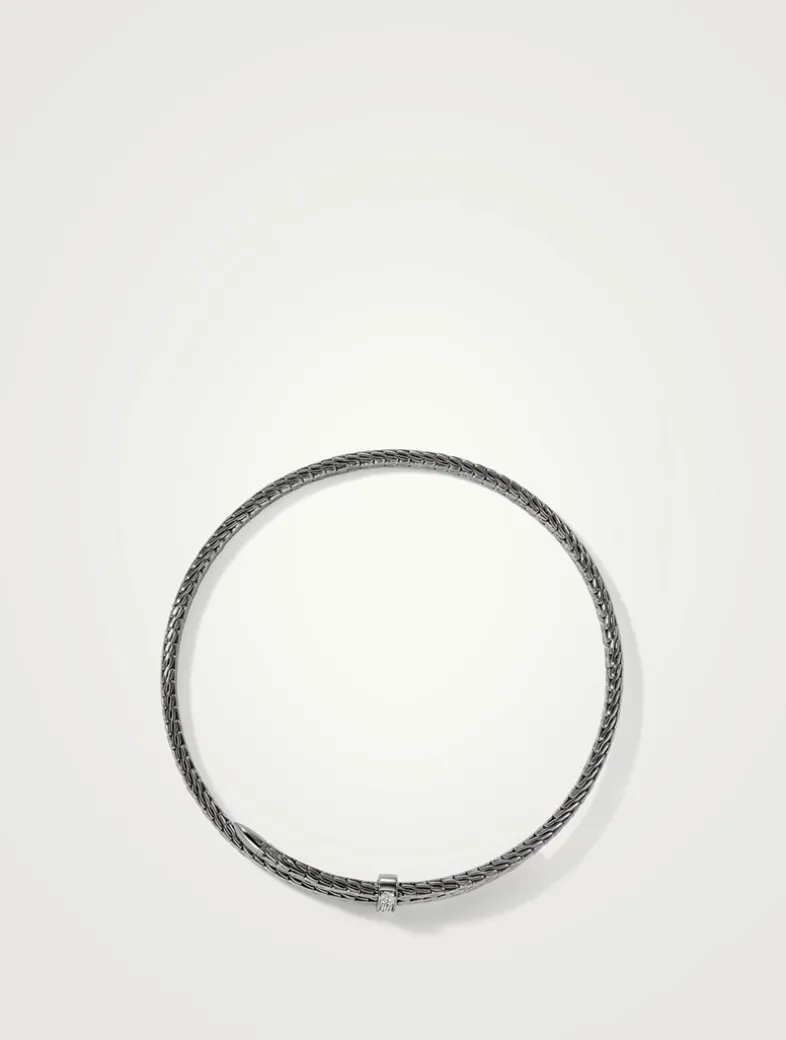Combining elegance and edge, this streamlined coil choker is artisan handcrafted in dark silver with sparkling white diamonds.