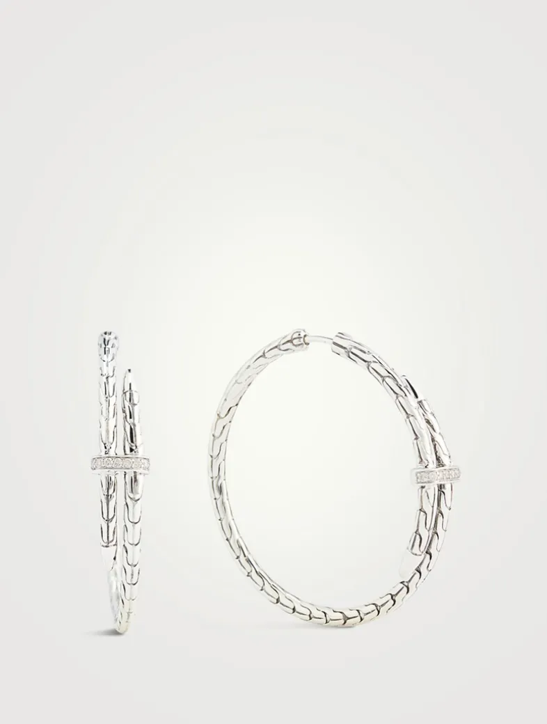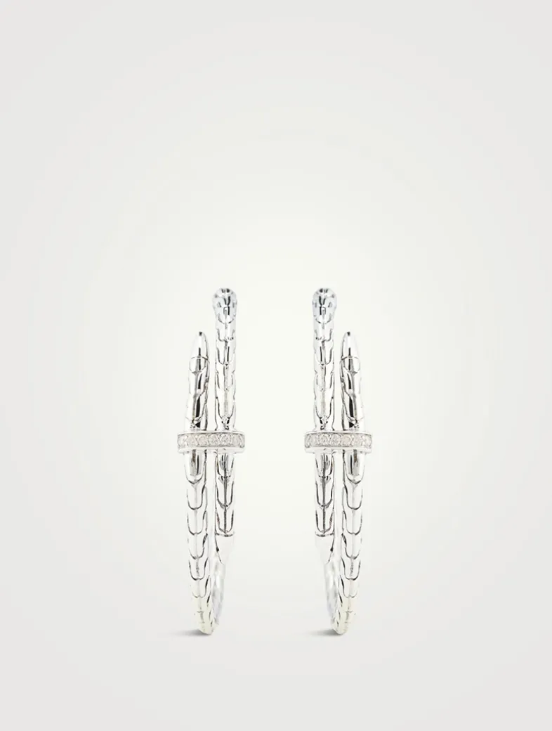 From the Spear collection, these streamlined hoop earrings feature a flex-and-thread design with diamond accents.